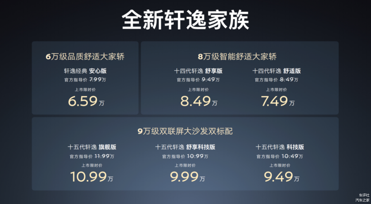 说起家轿,轩逸永远是绕不开的话题。这一代轩逸上市,限时价 9.49万—10.99万,直接杀进了9万区间。在合资车普遍溢价的今天,这个价格确实够狠。
