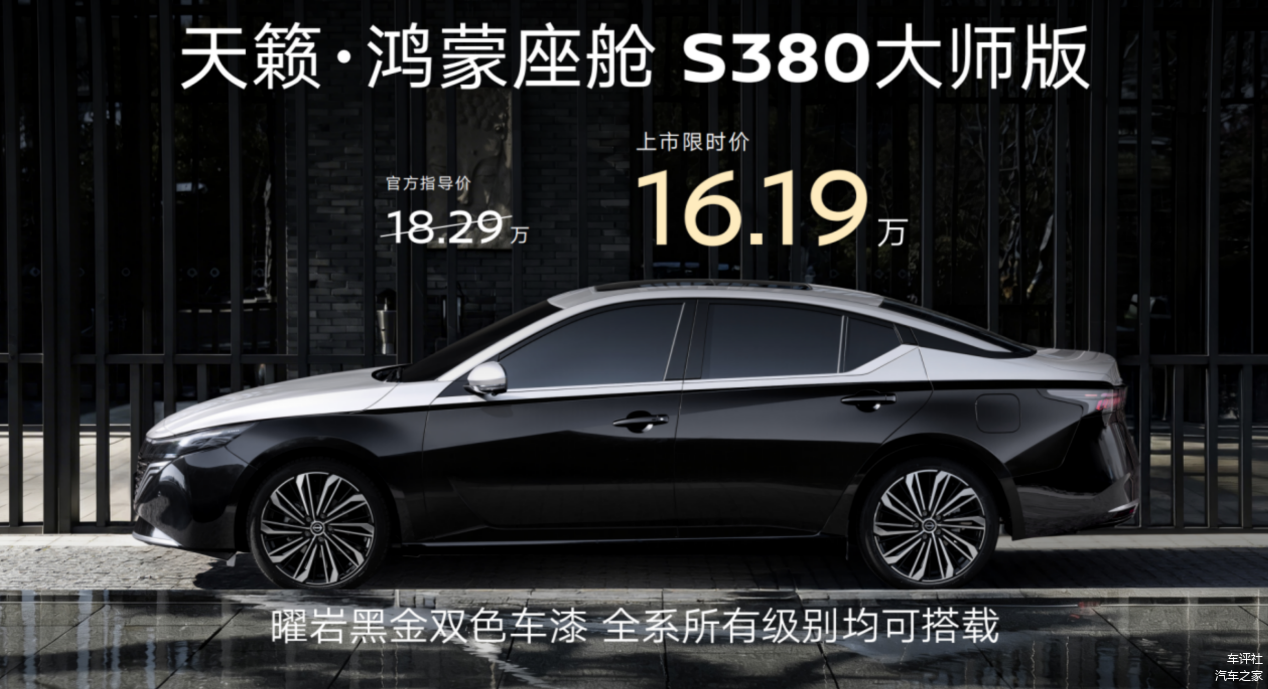 如果说轩逸是守住基本盘,那天籁・鸿蒙座舱S380大师版则是东风日产的“反击拳”,限时价16.19 万。