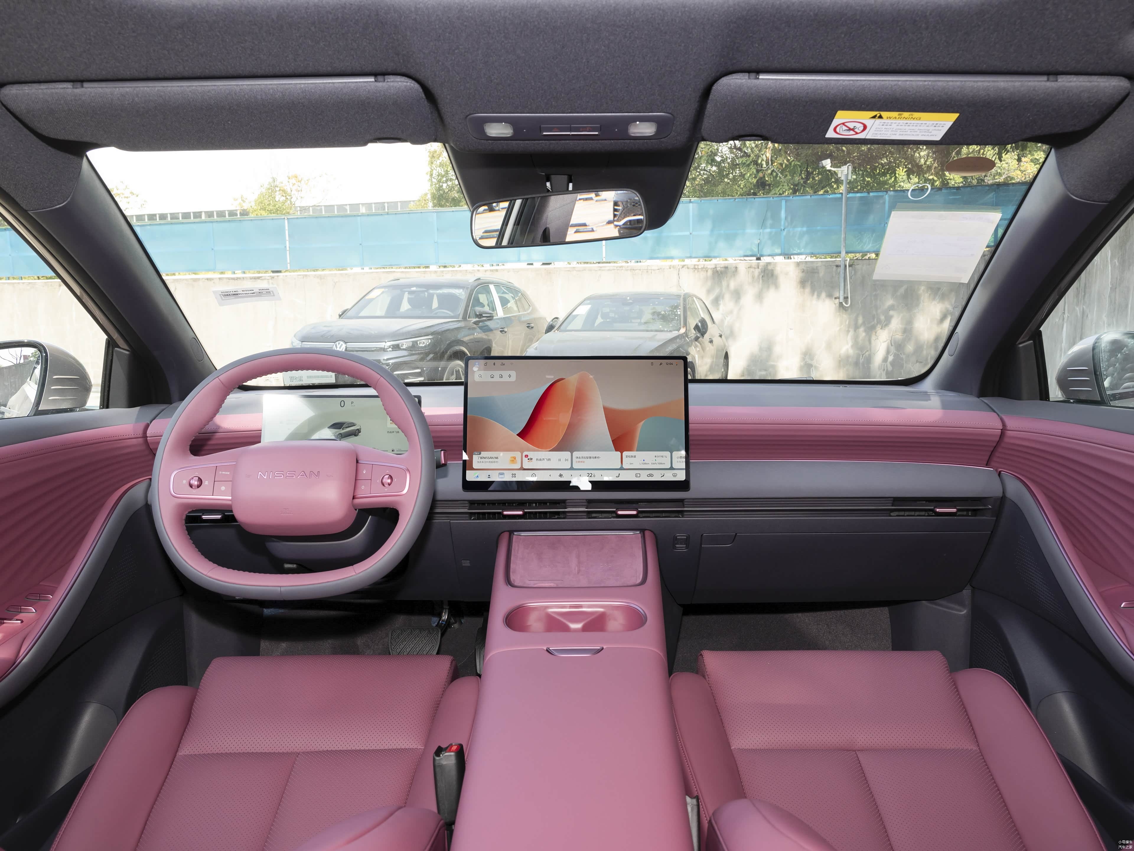 内饰方面同样是比较简洁的设计语言,提供有双幅式多功能方向盘、悬浮式全液晶仪表盘、悬浮式中控屏以及电子怀挡,中控台的层次感营造的比较到位,操作台部分还配备有手机无线充电面板以及杯架。中控屏内置NISSAN OS系统,支持HUAWEI HiCar、ICCOA Carlink以及Apple CarPlay手机互联。