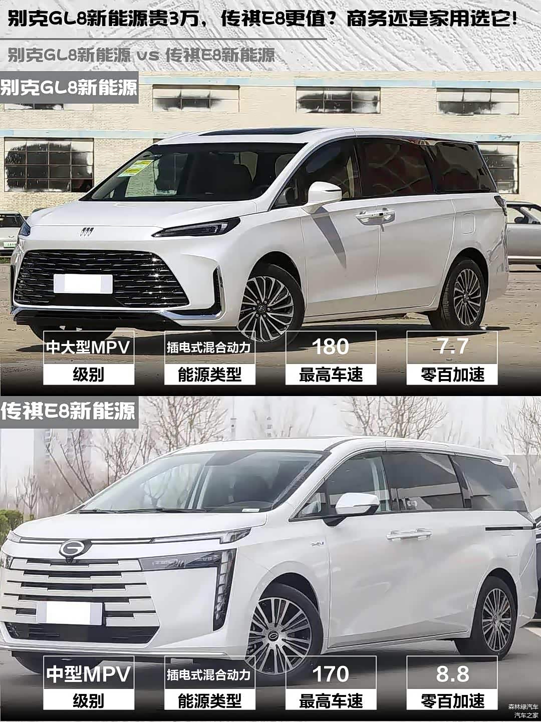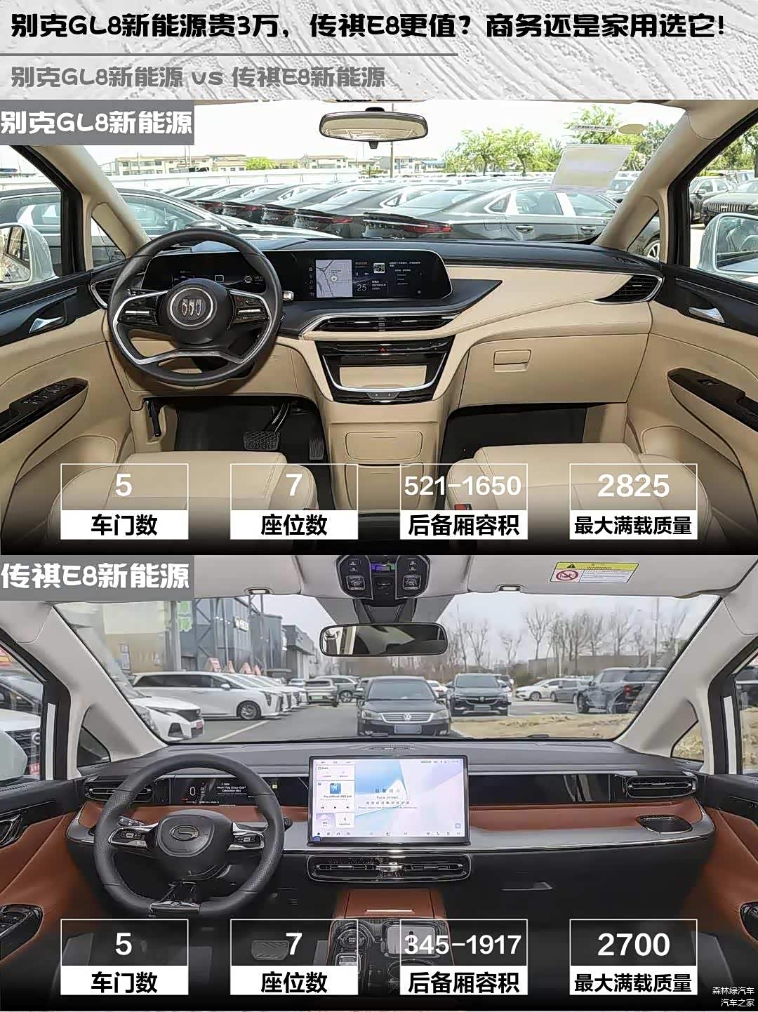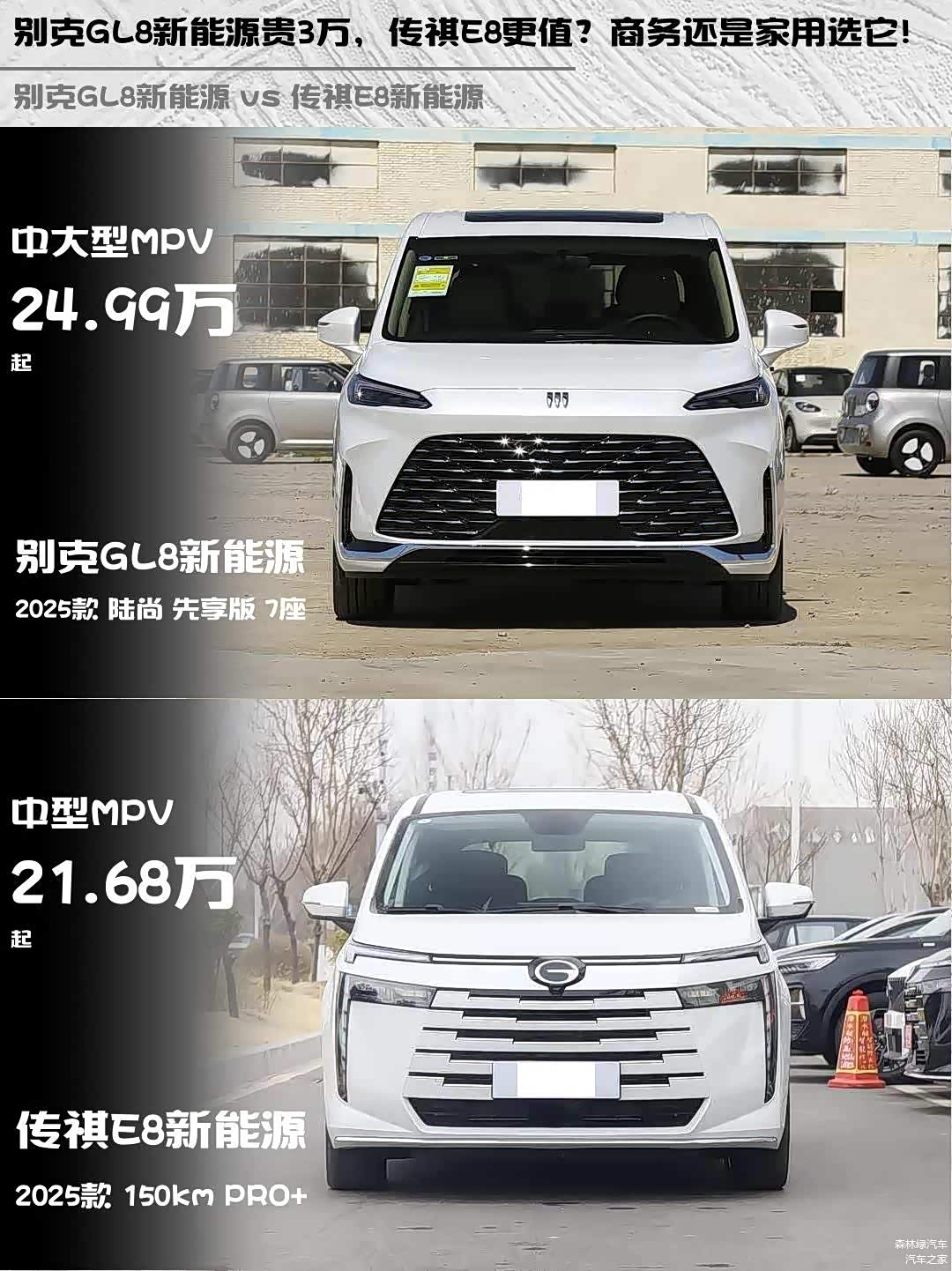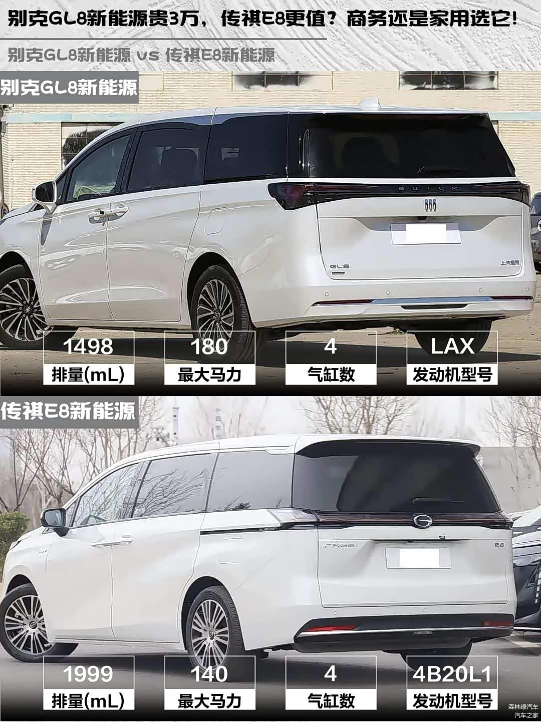 最近在帮朋友挑新能源MPV,深度对比了 别克GL8新能源(图片 | 参数 | 询价) 2025款 陆尚 先享版 7座和传祺E8新能源 2025款 150km PRO+,发现这两台车简直是家用和商务的两种解题思路!🚗💨
