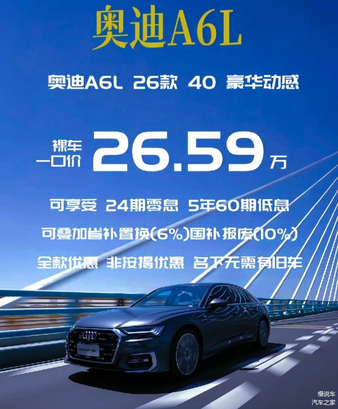 此次降价并非个例,奥迪旗下多款车型同步加大优惠力度。奥迪 A6L 最高优惠15.1 万元,优惠后 27.69 万元起;奥迪 A7L 最高降幅18.72 万元;奥迪 A3 部分车型终端价跌破 10 万元,豪华品牌价格体系全面下探。