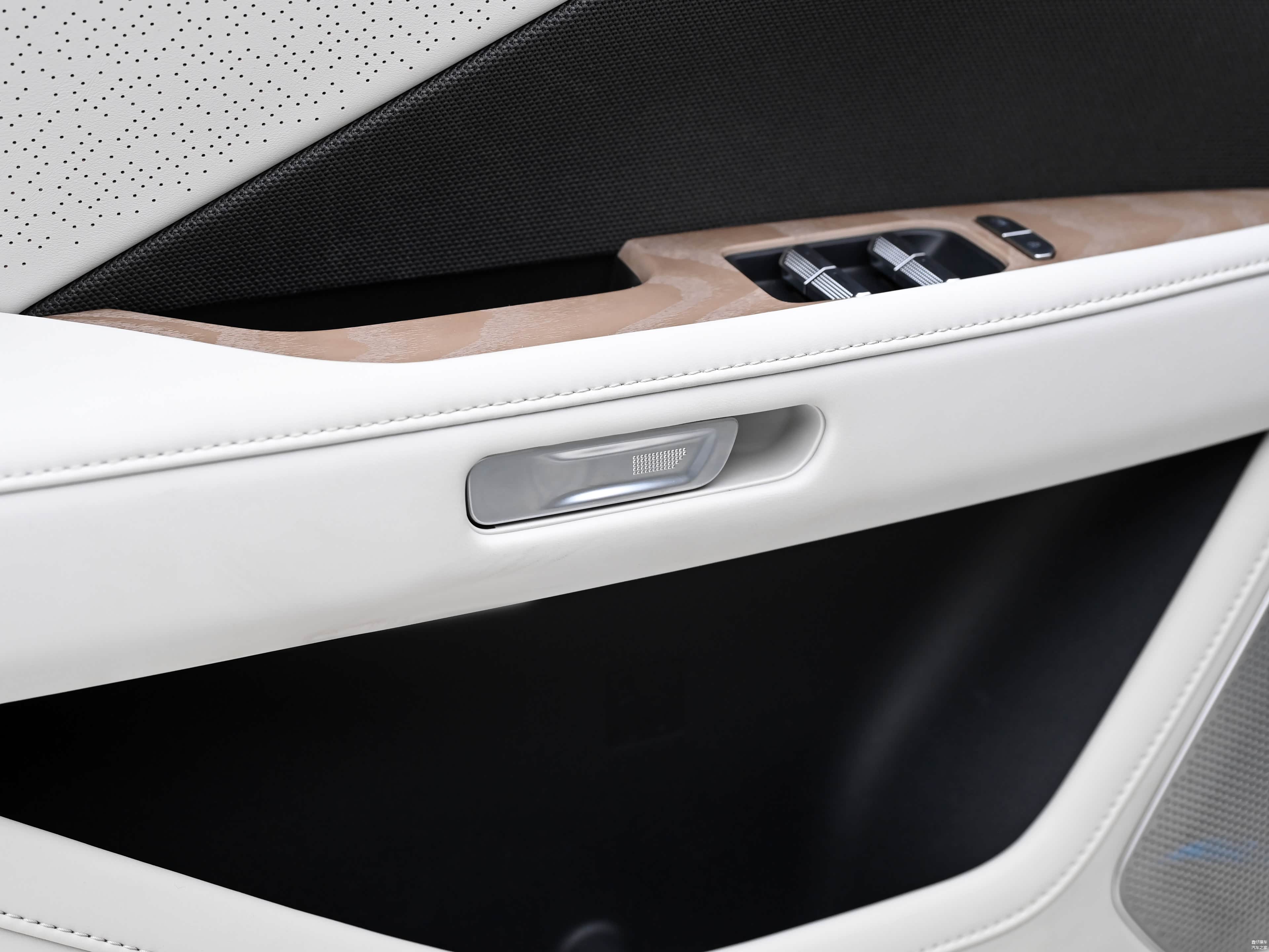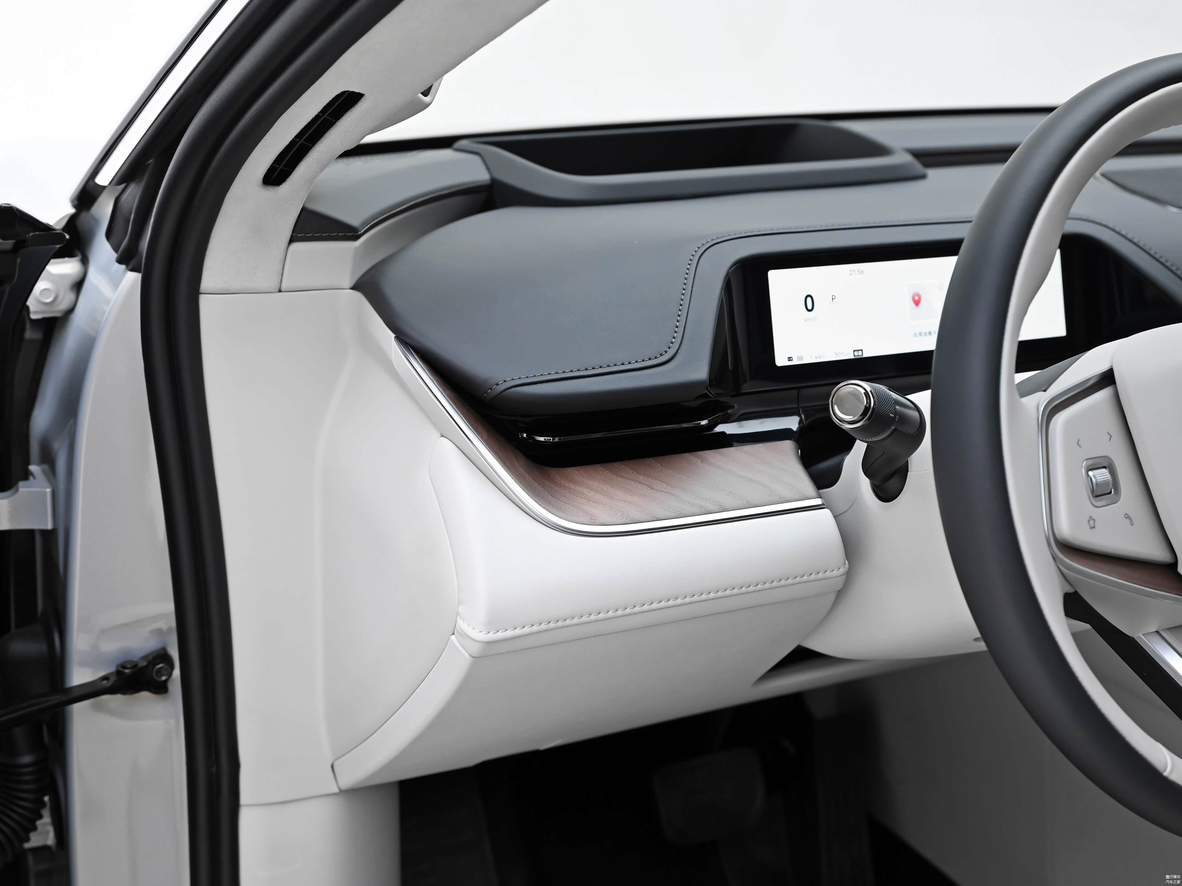 20英寸多条辐轮圈匹配较低扁平比轮胎,轮拱填充比例较高。车门采用半隐藏式门把手结构,兼顾空气动力与日常使用便利性。车顶前部布置激光雷达,前翼子板区域集成感知摄像头与毫米波雷达硬件,为Momenta R6系统提供环境感知基础。从硬件布局看,该车在感知层面已为城市与高速高阶辅助驾驶做出结构预留。