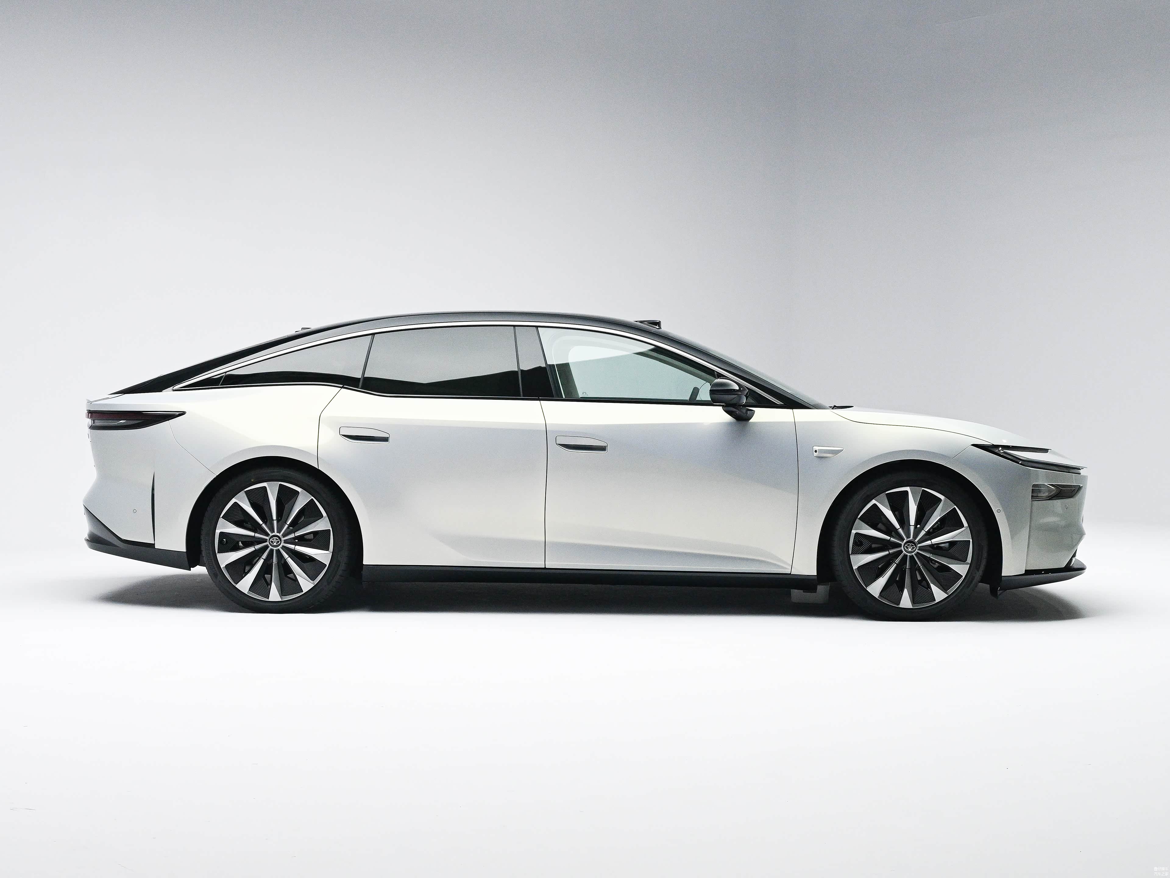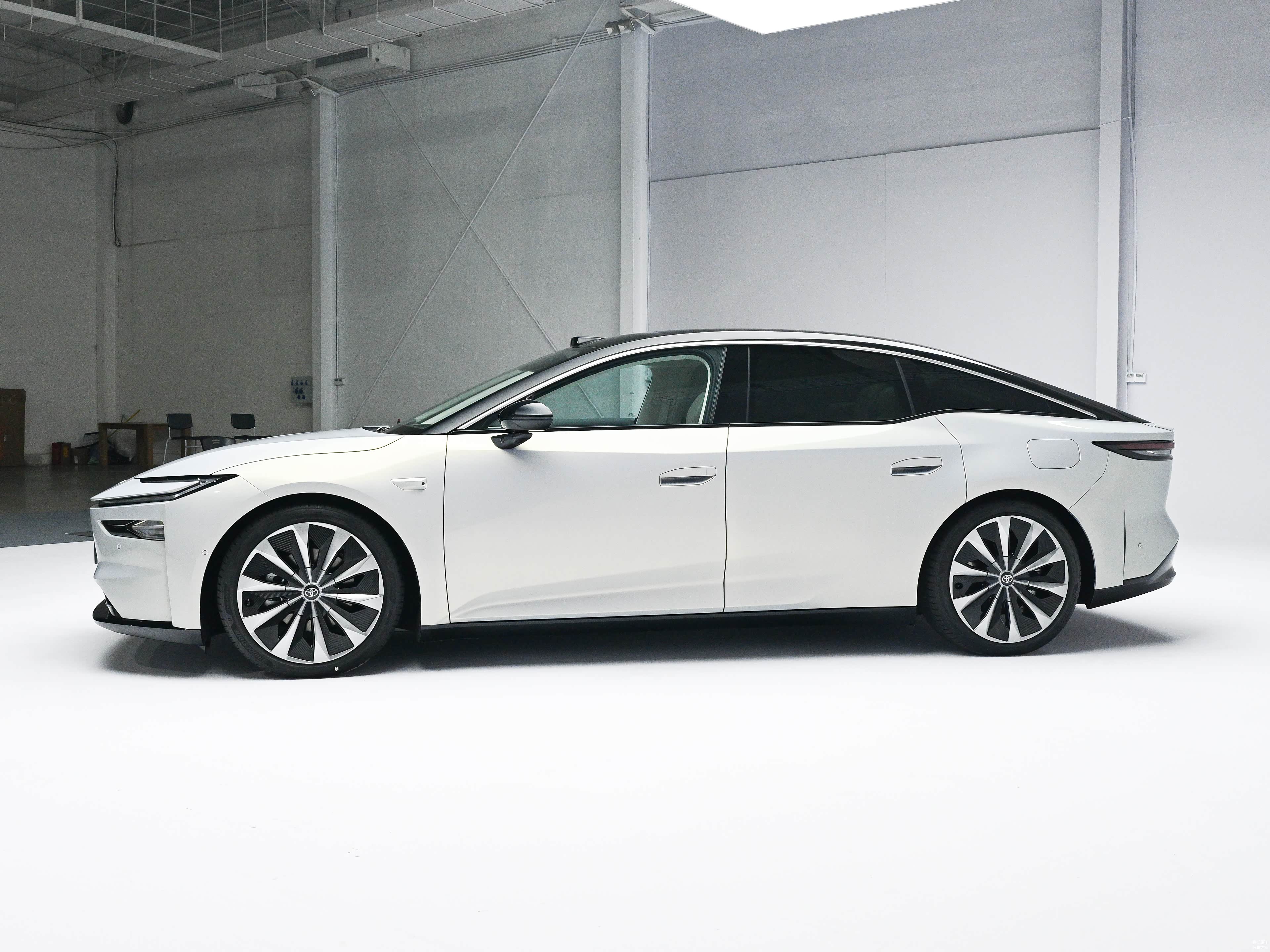 前包围两侧设置纵向通风开口装饰,与大灯区域形成结构呼应。前唇造型外扩,车头重心视觉略向下压,营造低趴姿态。整体设计逻辑以封闭式电动前脸为基础,通过灯带与进气装饰的组合建立识别特征。车身提供7种外观配色方案,覆盖常规金属漆与偏运动取向的深色系选择。