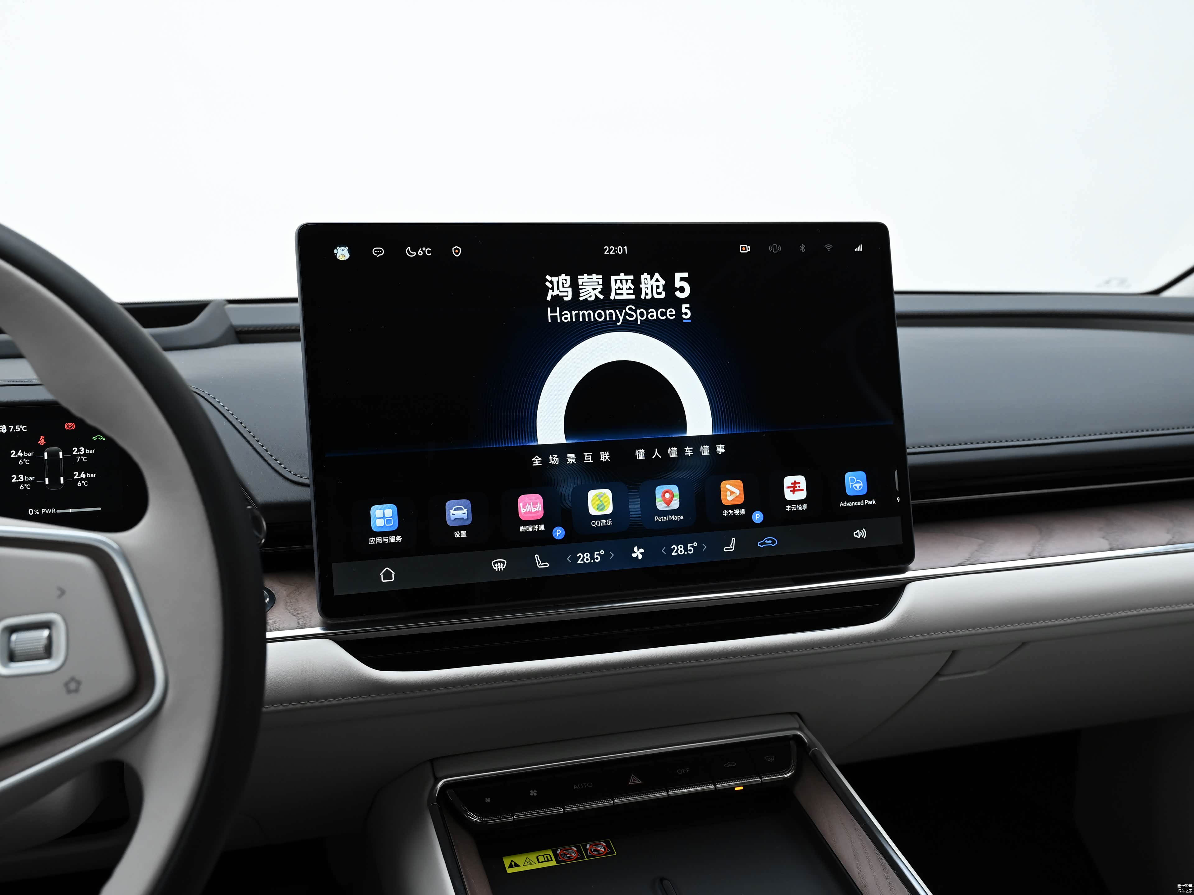 全系搭载鸿蒙座舱5.0系统是该车座舱层面的核心变化。系统基于MoLA大模型架构,支持模糊语义理解与多音区连续对话。实际使用场景中,驾驶员与副驾可分别进行语音指令交互,系统可区分声源位置。长期记忆与主动服务能力意味着系统能够根据历史使用习惯进行推荐,例如导航路径偏好、空调温度设置等。