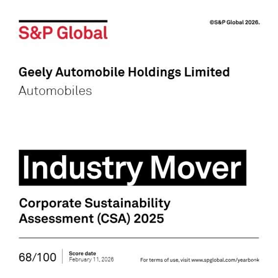 近日,国际权威评级机构标普全球(S&P Global)正式发布《全球可持续发展年鉴 2026》(Global Sustainability Yearbook 2026),以下简称“《年鉴》(全球版)”。吉利汽车控股有限公司(0175.HK)凭借在环境、社会和公司治理(ESG)的卓越表现,在标普全球企业可持续发展评估(CSA)中成绩强势突破,从78家参评的全球汽车制造商中脱颖而出。首次被选入《年鉴》(全球版)即跻身全球仅8家入选的汽车制造商中唯一中国车企,实现了历史性突破。