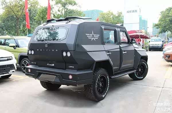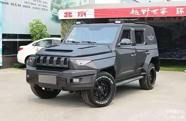 这辆BJ80防暴车的官方名称是叫做BJ80捍卫者版,捍卫者,听名字就很厉害了有木有。据说它的防护等级达到了A1级别,车窗采用了高强度复合玻璃,厚度比起一台iPhone7还要厚。全车几乎也做过了防弹处理和碳纤维处理,侧面还取消了C柱和D柱,还换装了具有一定防爆能力的轮胎,据说在轮胎全部破损的情况下还可以保持匀速行驶,如果速度不高,匀速行驶的话,大咖的车也可以哦!