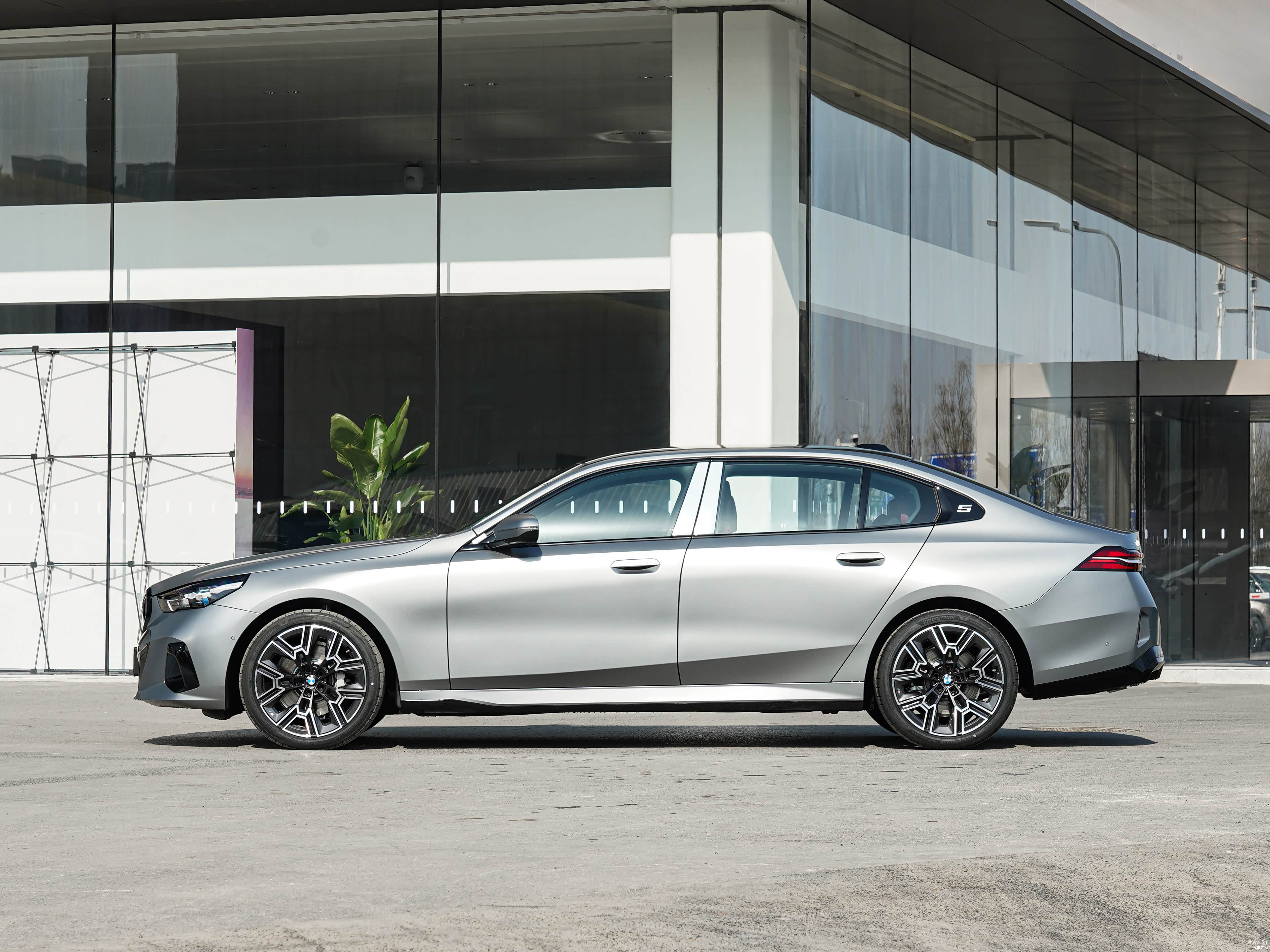 再来看车身侧面部分,车身侧面是5系最经典的角度,5175mm的车长与3105mm的轴距,营造出接近7系的体量感,修长的腰线从前翼子板贯穿至车尾,搭配低趴的车头与上扬的车窗线条,将豪华与运动气质平衡得恰到好处。半隐藏式车门把手降低了风阻,无框车门的加入则为这台商务座驾增添了一丝轿跑的灵动。马年版的专属标识是车身设计的点睛之笔,C柱位置镶嵌着银色“马”形浮雕,低调却极具辨识度,搭配门槛处发光的“Horse Edition”迎宾灯,解锁瞬间仪式感满满。19英寸运动轮圈采用熏黑设计,与整车的运动风格相得益彰。