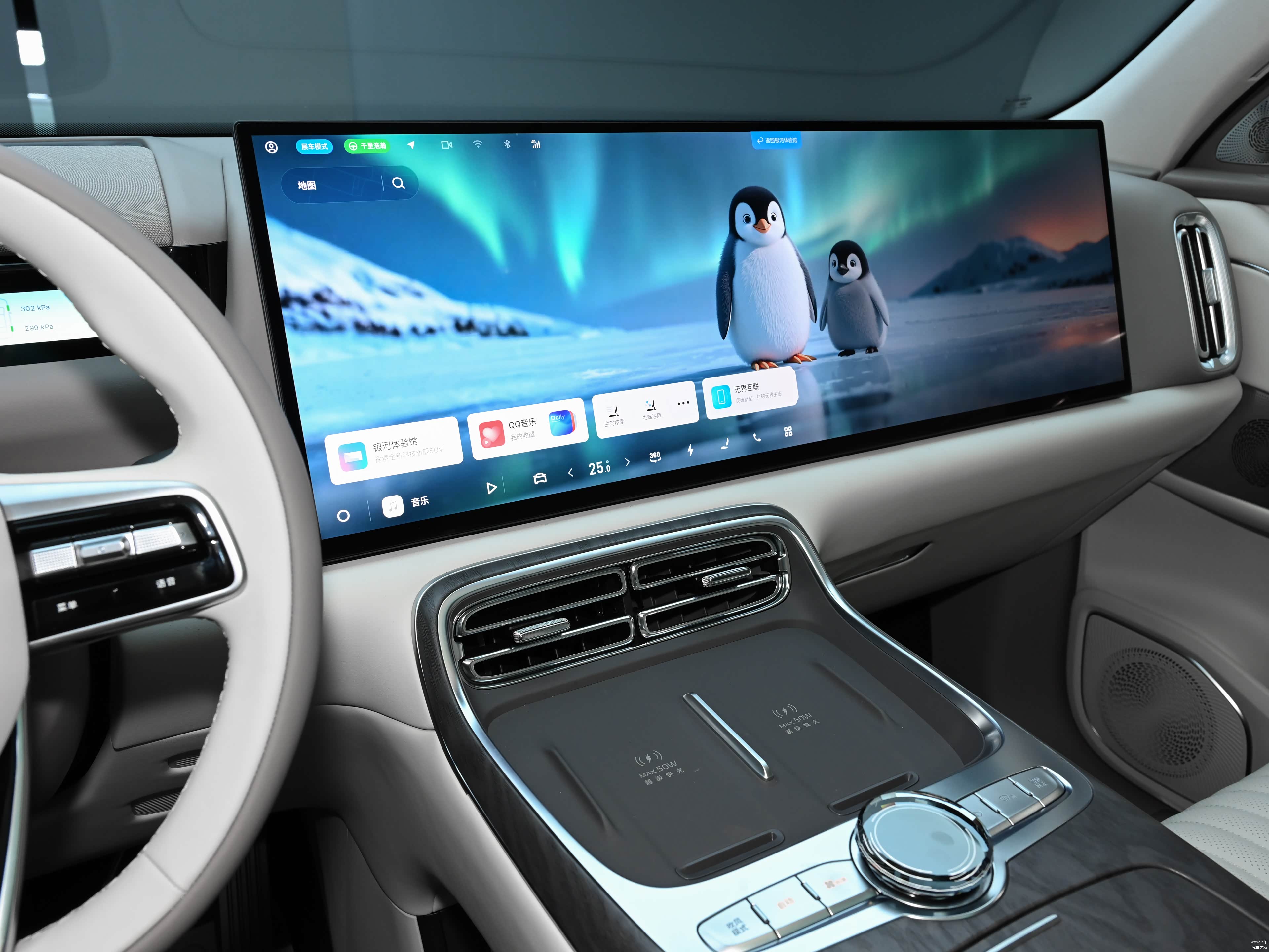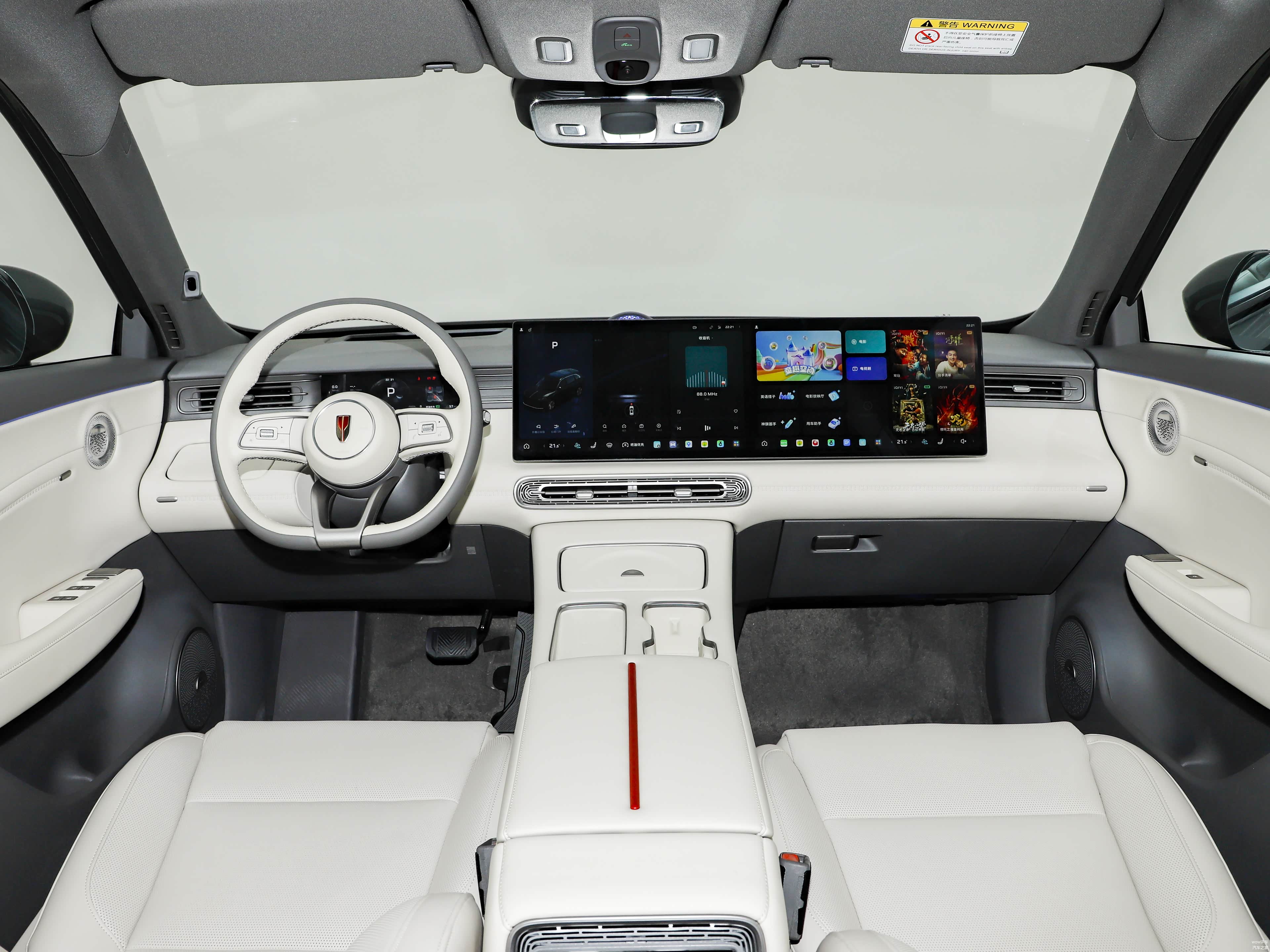 内饰以简约大气为主,30英寸6K贯穿大屏是视觉核心,搭配12.66英寸液晶仪表与32英寸HUD,形成三屏联动的科技座舱,暗色木纹饰板又为科技感增添了温馨的家用氛围,整体设计偏向“科技+实用”的年轻化需求。