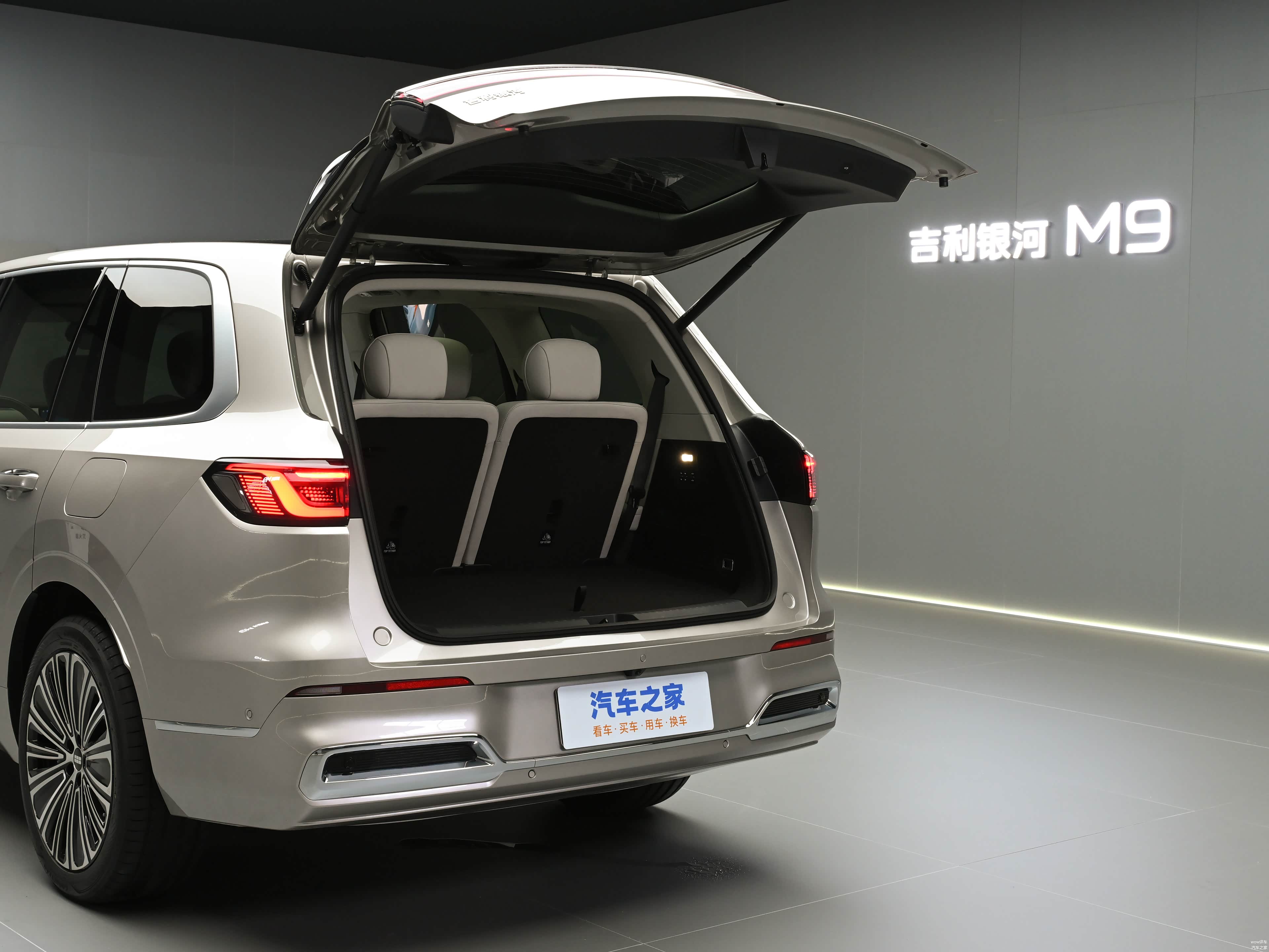 银河M9设计主打星汉涟漪的科技时尚风格。前脸贯穿式前灯由380颗微型LED组成,旭日东升尾灯内含436颗LED灯珠,灯光效果精致且辨识度极高,封闭式前脸搭配醒目银河logo,契合新能源车型的设计趋势。