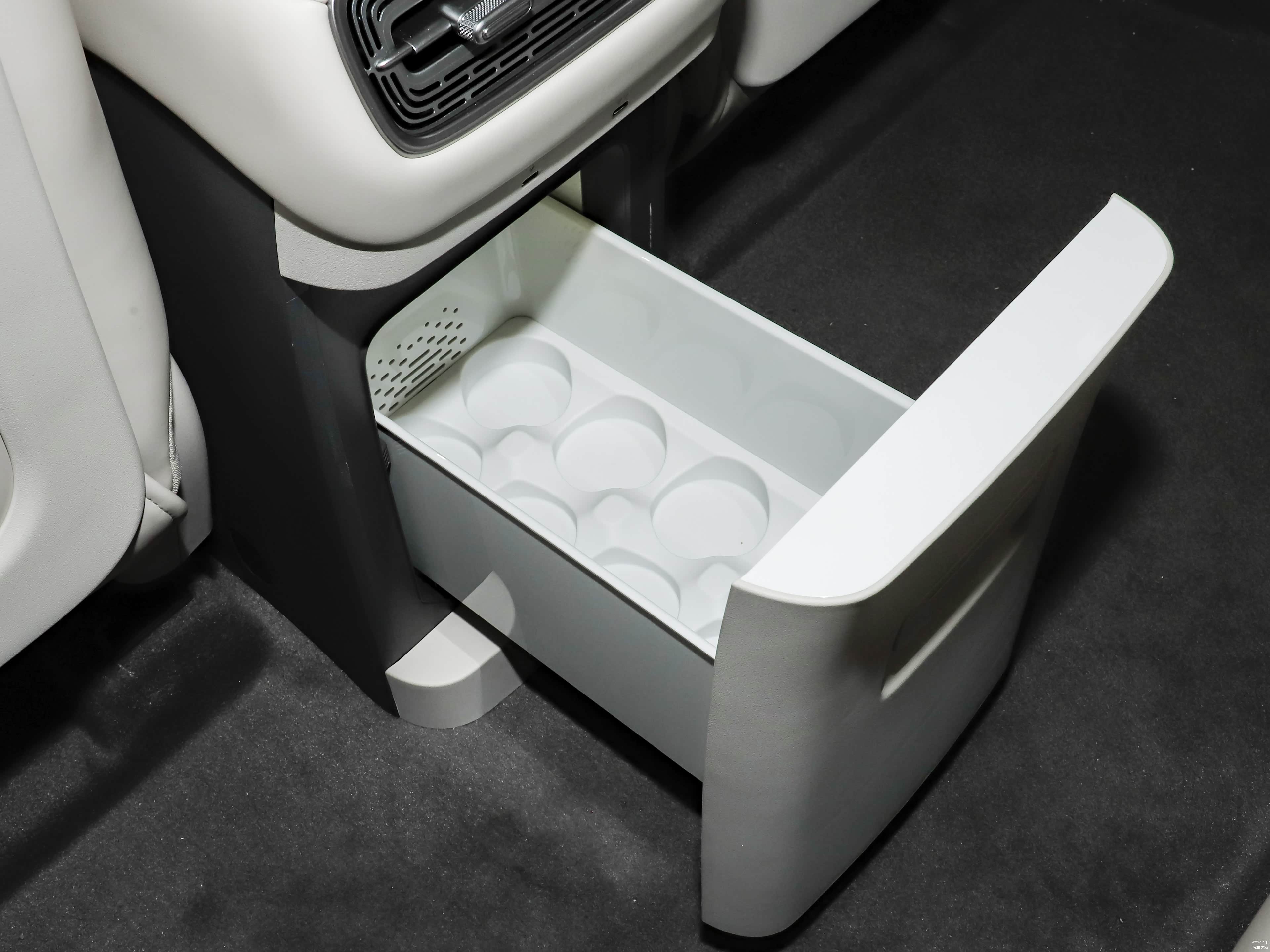 储物方面,全车配备31处“百宝格”储物系统,支持可藏、可固、可挂,前排后排后备箱能灵活打通。车载冰箱中还细节的做了固定瓶子的底座。