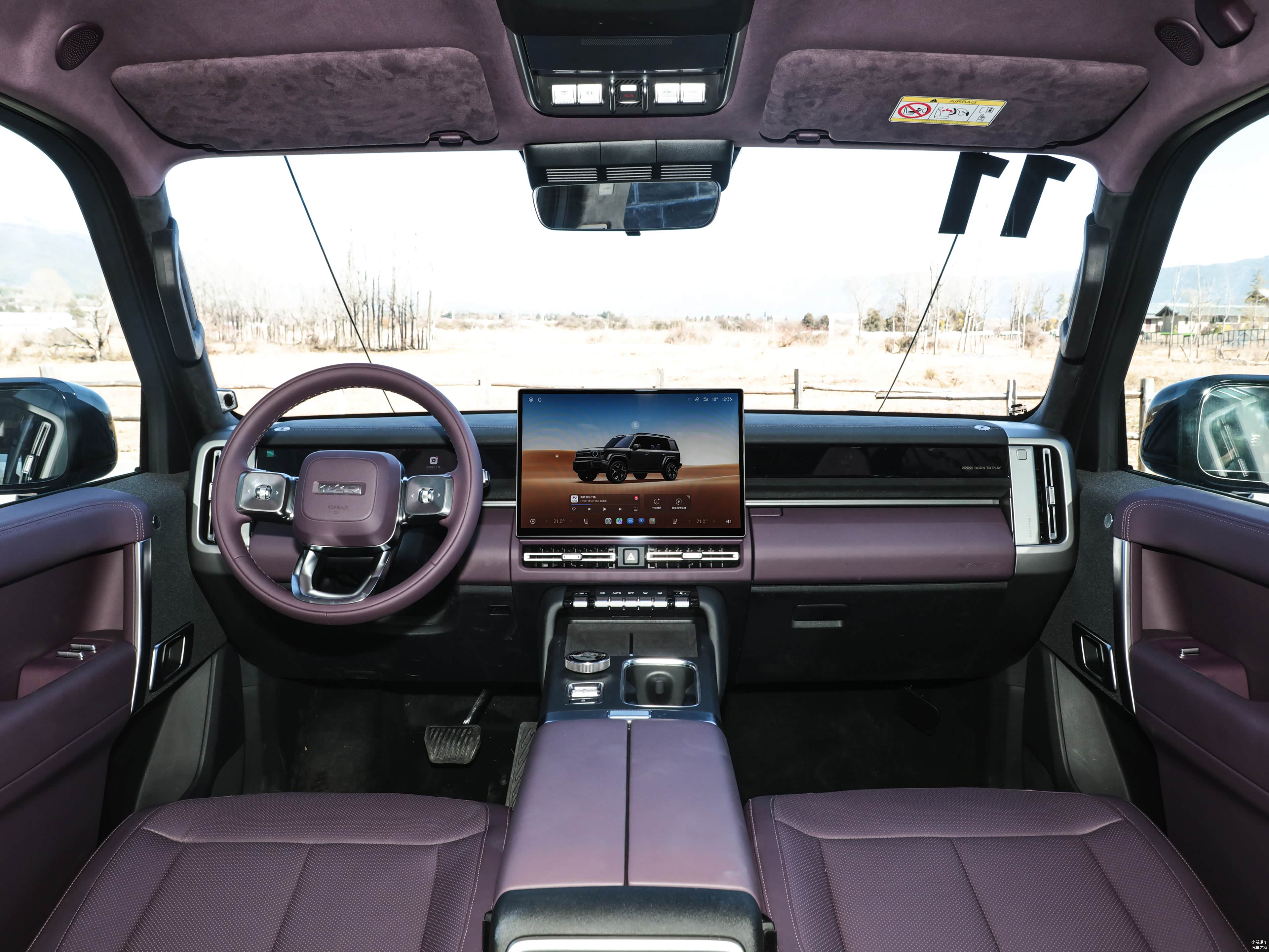 侧面造型方面,车顶线条比较平直,配备有粗壮的行李架,整个车身也比较方正,有着浓浓的硬派气息;腰线采用了贯穿式设计,从前翼子板延伸到车尾,让视觉效果显得修长大气;轮眉和侧裙部分设计有粗壮的黑色饰板,凸显了力量感;轮毂则是四幅式造型,风格还算简洁。