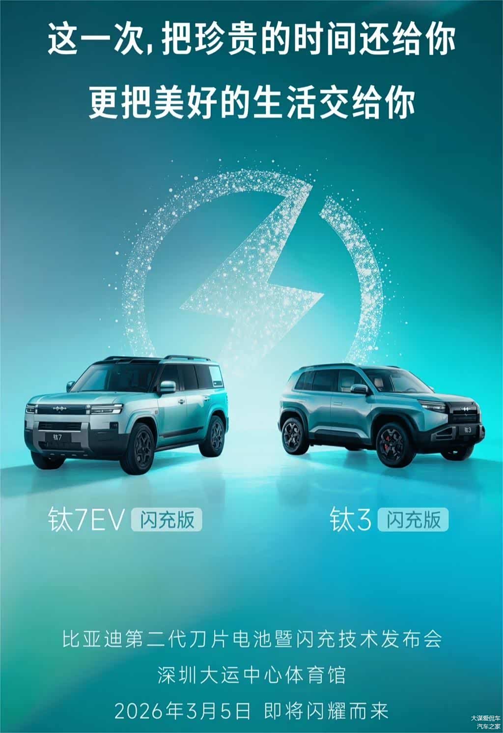 比亚迪选在惊蛰这天搞"全家桶"发布会,阵仗确实不小。方程豹 钛3(图片 | 参数 | 询价)闪充版、钛7 EV闪充版联袂登场,再加上大唐、海豹08、仰望U7/U8/U8L等一众新车,这哪是发布会,简直是车展。