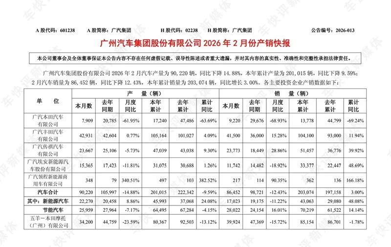 解释一下,以上数据来自广汽集团公布的2026年2月份产销快报,权威性毋庸置疑。通过同为广汽集团旗下两家主流合资汽车品牌2月销量的对比,不难发现“燃油车迎来春天”这个观点,实际上是个伪命题。能不能真正迎来春天,还得看车企自己的实力。