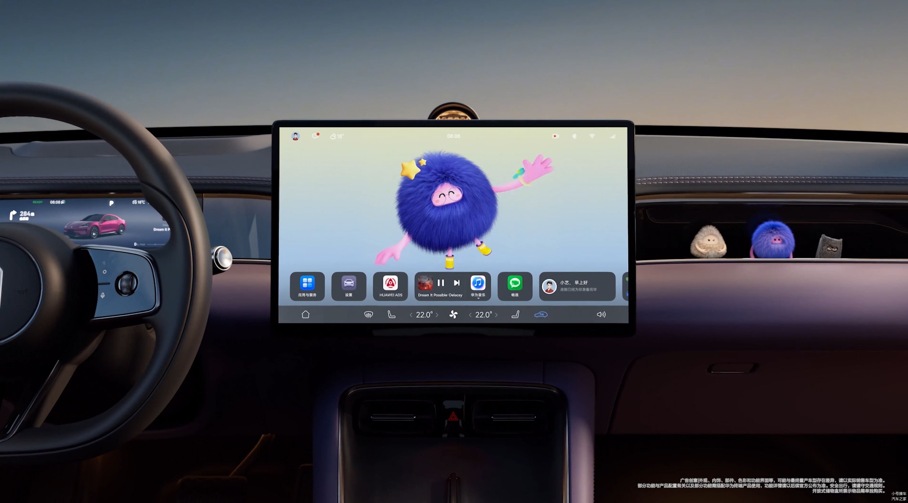 内饰方面,整体也是比较简洁的布局,提供有三幅式平底多功能方向盘、全液晶仪表盘、悬浮式中控屏以及电子怀挡,中控屏支持四维随动功能,副驾驶前方中控台还设计有内凹的储物槽,可放置用户喜爱的毛绒手办和玩具。