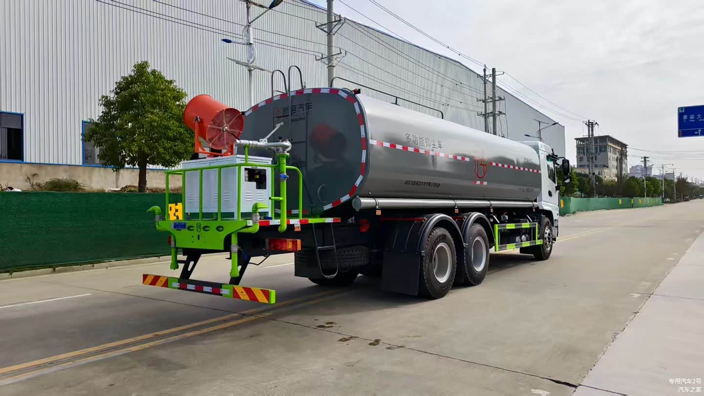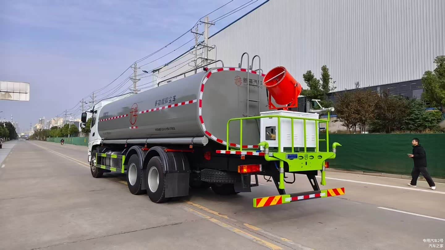 陕汽后双桥 20 方洒水车是25 吨级国六重型主力,罐体有效容积 20m³,主打城市主干道、高速、园区与工地大水量冲洗降尘,承载强、续航久、适配重载与复杂路况。