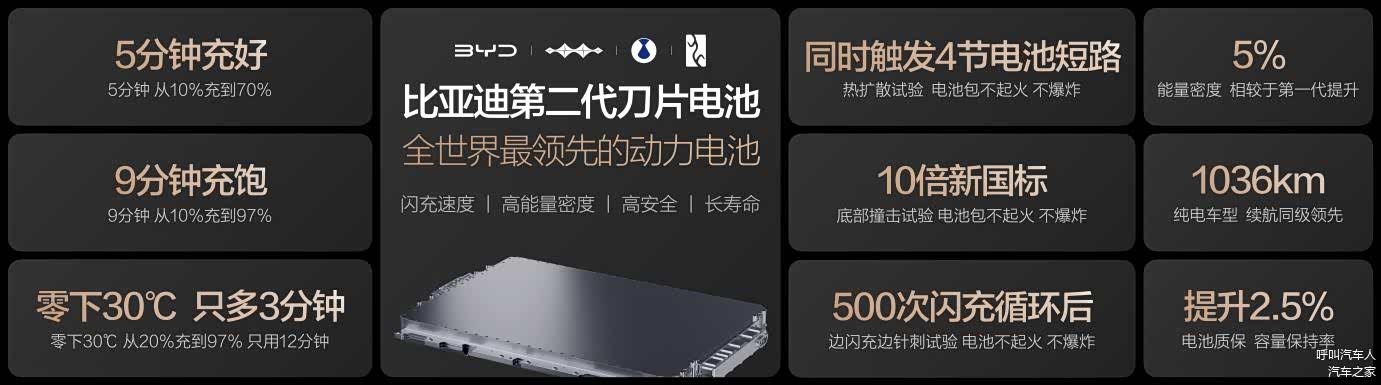 比亚迪第二代刀片电池,既给到用户前所未有的闪充速度,又给超1000公里的超长续航,还给更长的寿命和更高的质保政策,更给远超新国标的安全,这就是全世界最领先的动力电池!