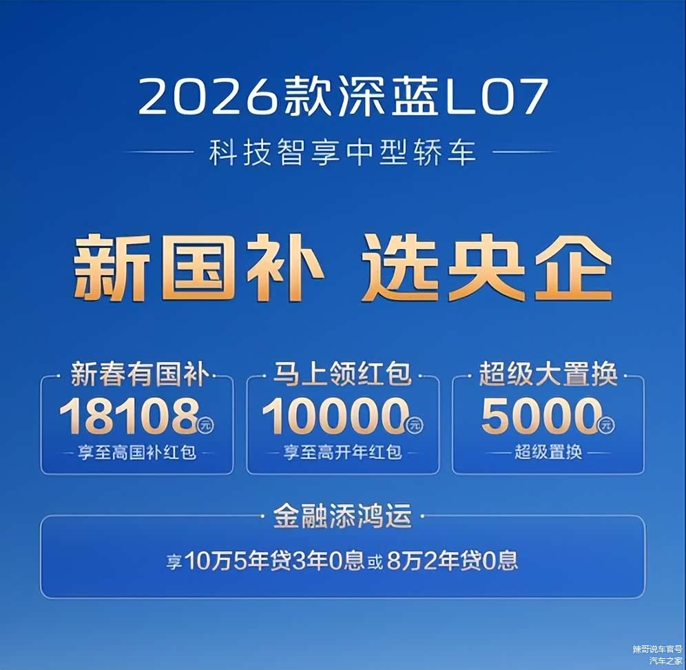 而且近期购买深蓝L07的政策也相当给力,不仅可以享至高18108元的国补红包,还有最高10000元的开年红包,以及5000元的超级置换补贴。那么,一边是“合资品牌”的日产N7,一边是表现更全面且购车福利巨大的深蓝L07,你会怎么选?