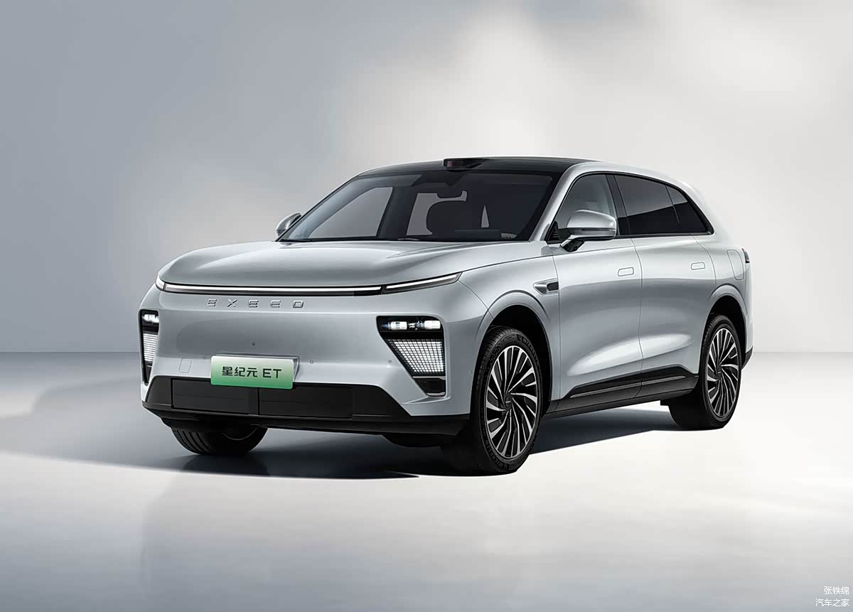 从此前的申报信息以及新车外观官图来看,这辆星途EX7的外观是基于星途星纪元ET而来,其中前脸部分的造型进行了调整,上部灯组造型风格和星纪元ET基本一致,前杠和前杠两侧的大灯造型经过了重新设计,前杠上部是封闭式的造型,下部的进气中网使用了横贯式的镀铬格栅。