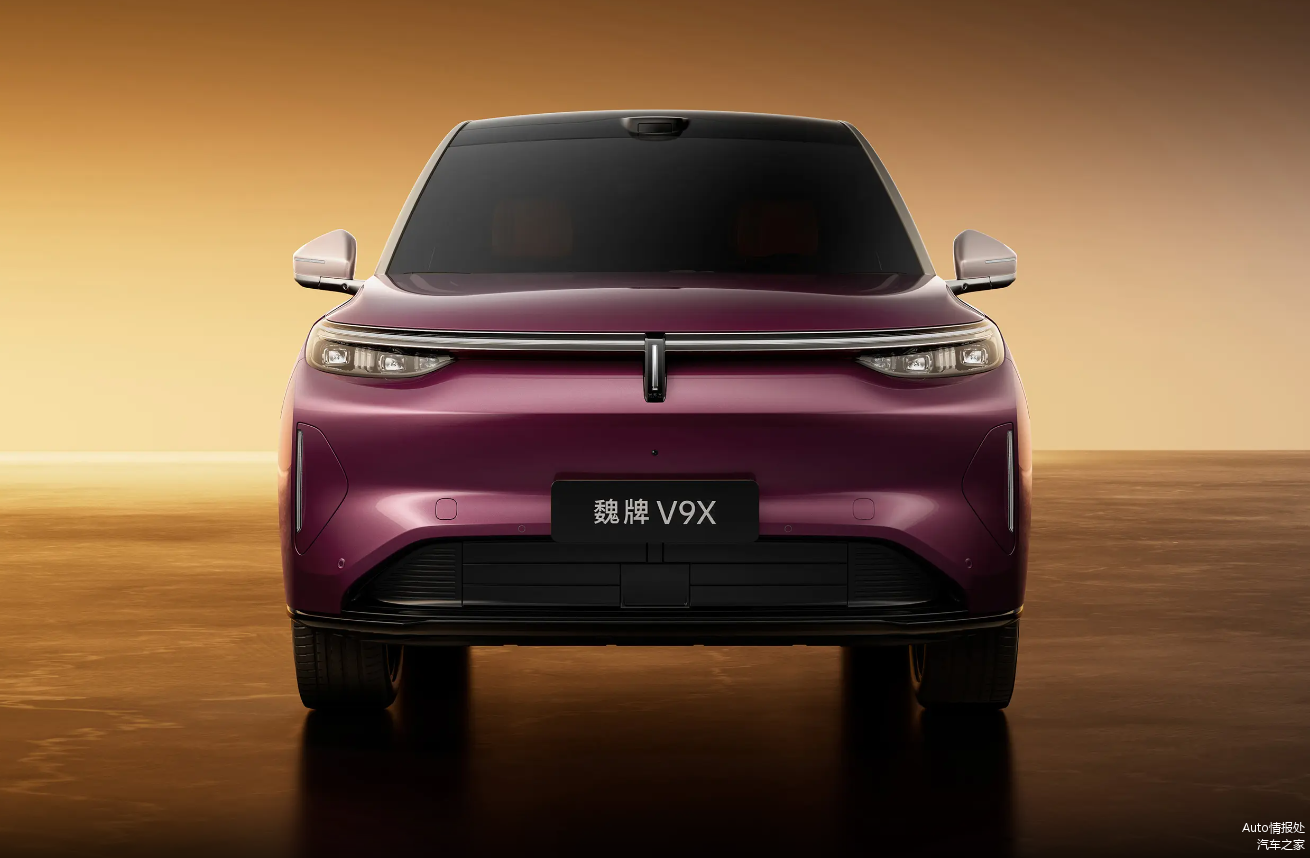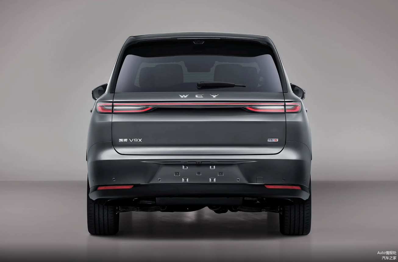 魏牌V9X在外观方面,采用全新的设计风格,跟现款魏牌车型相比,没有什么相似之处,车头给人的感觉较为紧凑,很有立体感,大灯组采用一体式设计,LED灯带贯穿整个车头,车顶还提供激光雷达,轮毂采用多幅式设计,尾灯中间还提供品牌字母LOGO,魏牌V9X还将提供单色车身和双色车身可以选择,车身尺寸方面,长宽高分别为5299x2025x1825毫米,轴距为3150毫米,座椅采用6座布局。