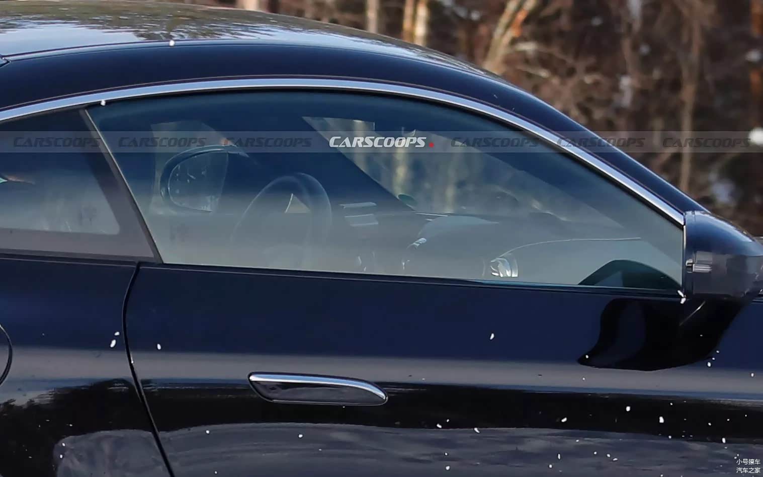 车身侧面的造型没有变动,依然采用了双门溜背式造型,无框车门也没有缺席,有着浓浓的轿跑风格,腰线采用了分段式设计,点缀出了车身侧面的层次感;门把手则是弹出式设计,能够起到降低风阻的作用;前翼子板位置还设计有鲨鱼腮,搭配双五幅式轮毂、大尺寸刹车盘以及红色卡钳凸显了运动气息。
