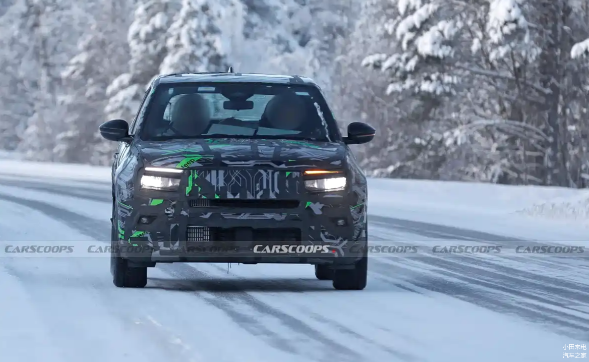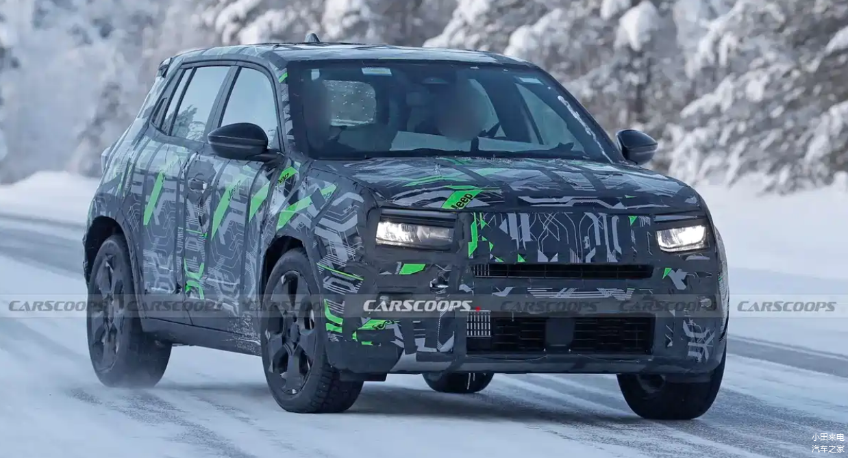 从曝光谍照观察,新款Jeep Avenge曝光背景为雪野赛道,意味着谍照正在进行冰雪测试。从谍照伪装程度观察,车辆大部分外表贴附了拉花,不过关键的进气口,车灯,轮毂等局部直接曝光,此外前风挡和侧窗均没有贴敷反光膜,意味着新车保密程度一般。这一点当然可以理解,毕竟新款Jeep Avenge仅仅是大改款,并非全新垂直换代,虽然外形内饰经过重新设计,但是这种设计更多是针对性更新,并非彻底的脱胎换骨的进化,所以在保密层级方面,相比全新车型会略微弱化一些。