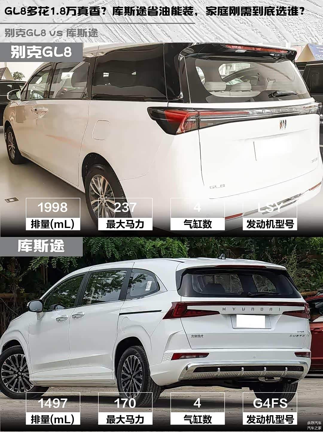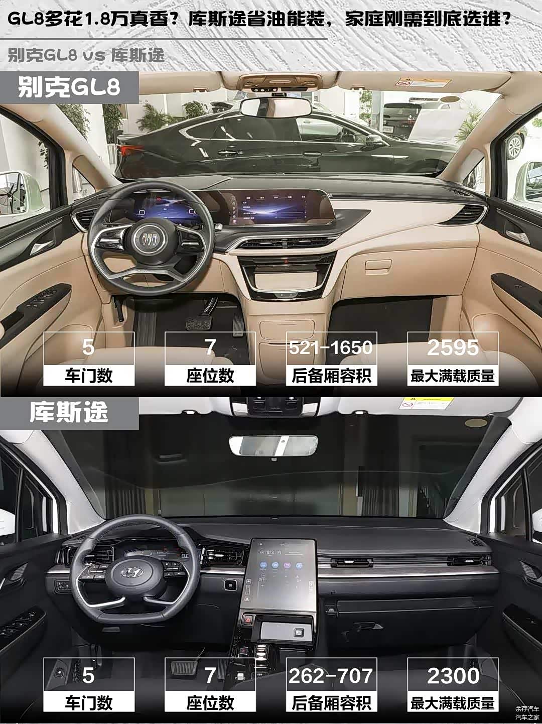 价格方面:GL8指导价19.99万,库斯途18.18万,差价1.8万。GL8适合追求豪华质感+商务需求的用户,库斯途则是性价比之选,特别适合精打细算的家庭用户。