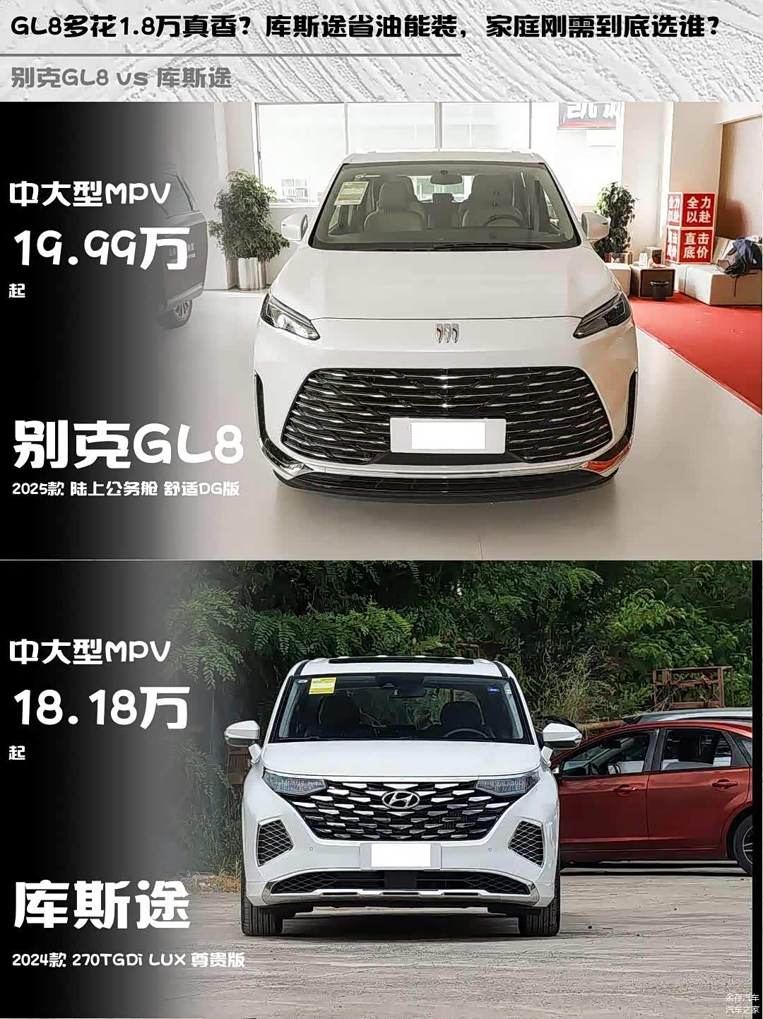 最近在选家用MPV的朋友看过来!今天深度对比两款热门车型—— 别克GL8(图片 | 参数 | 询价) 2025款 陆上公务舱 舒适DG版和库斯途 2024款 270TGDi LUX 尊贵版,看完这篇你就知道哪款更适合你啦!✨