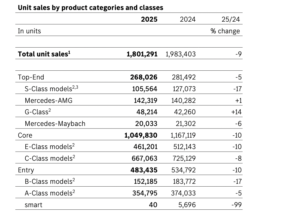 2月12日,奔驰集团发布2025财年业绩。虽然此前已有预告,但当成绩单全貌揭开时,依然让业界感到阵阵寒意:销量、营收、利润三项核心指标全面下滑,其中调整后息税前利润(EBIT adjusted)更是遭遇“膝斩”,跌幅高达40%。