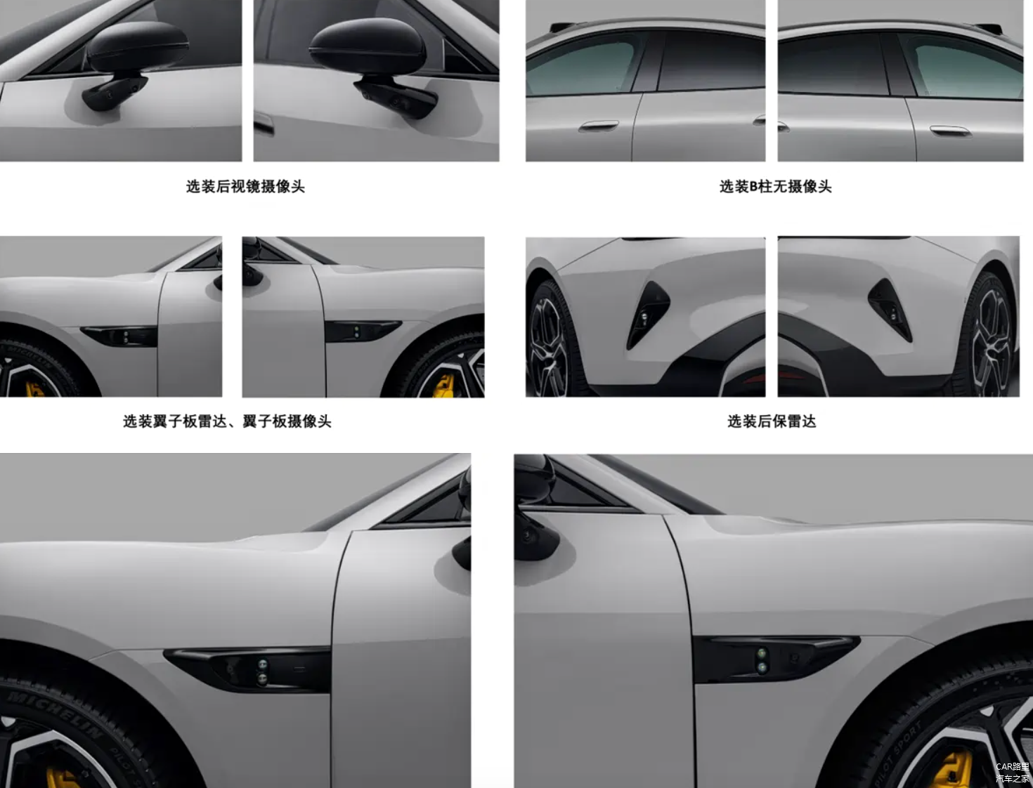 虽然新款SU7上市在即,但是最新一期申报图中,新车增加了车身上的激光雷达数量,最终可能会配备五激光雷达。从位置来看,主要位于两侧翼子板和车尾两侧,同时车身侧面的摄像头位置也随之调整。如此一来,这款车共拥有五个激光雷达,在硬件层面拉到了一个新的高度。鉴于新款即将上市,预计该车的出现更多是技术储备的需求。