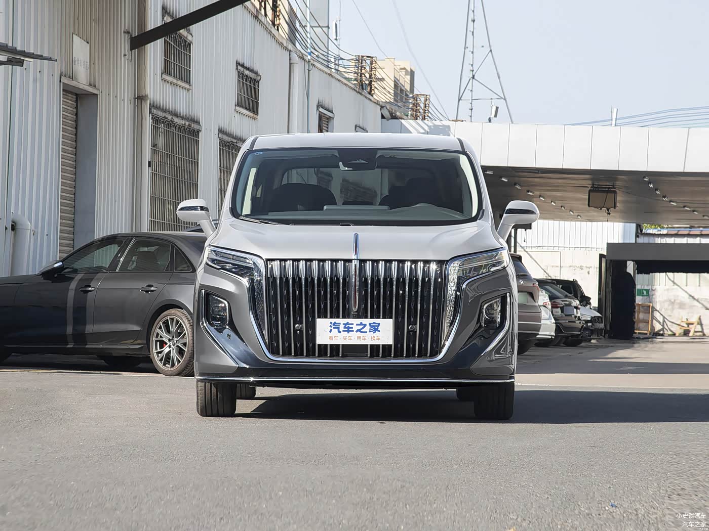 我们首先来看新车的外观设计方面,红旗HQ9的车头设计将中式美学与现代豪华完美融合,第一眼望去,便能感受到扑面而来的威严与大气。标志性的直瀑式“高山飞瀑”进气格栅占据了前脸的核心位置,粗壮的镀铬饰条整齐排列,如同高山倾泻而下的瀑布,既彰显了红旗品牌的尊贵血统,又营造出强烈的视觉冲击力。中央贯通式的红旗旗标从引擎盖一直延伸至格栅底部,在阳光下熠熠生辉,极高的辨识度让人远远就能认出这是一辆红旗车。分体式LED晶钻前大灯组是车头的另一大亮点,上方是修长的日间行车灯,如同锐利的鹰眼,下方则是负责照明的主灯组,内部采用了先进的LED光源,照明效果出色。