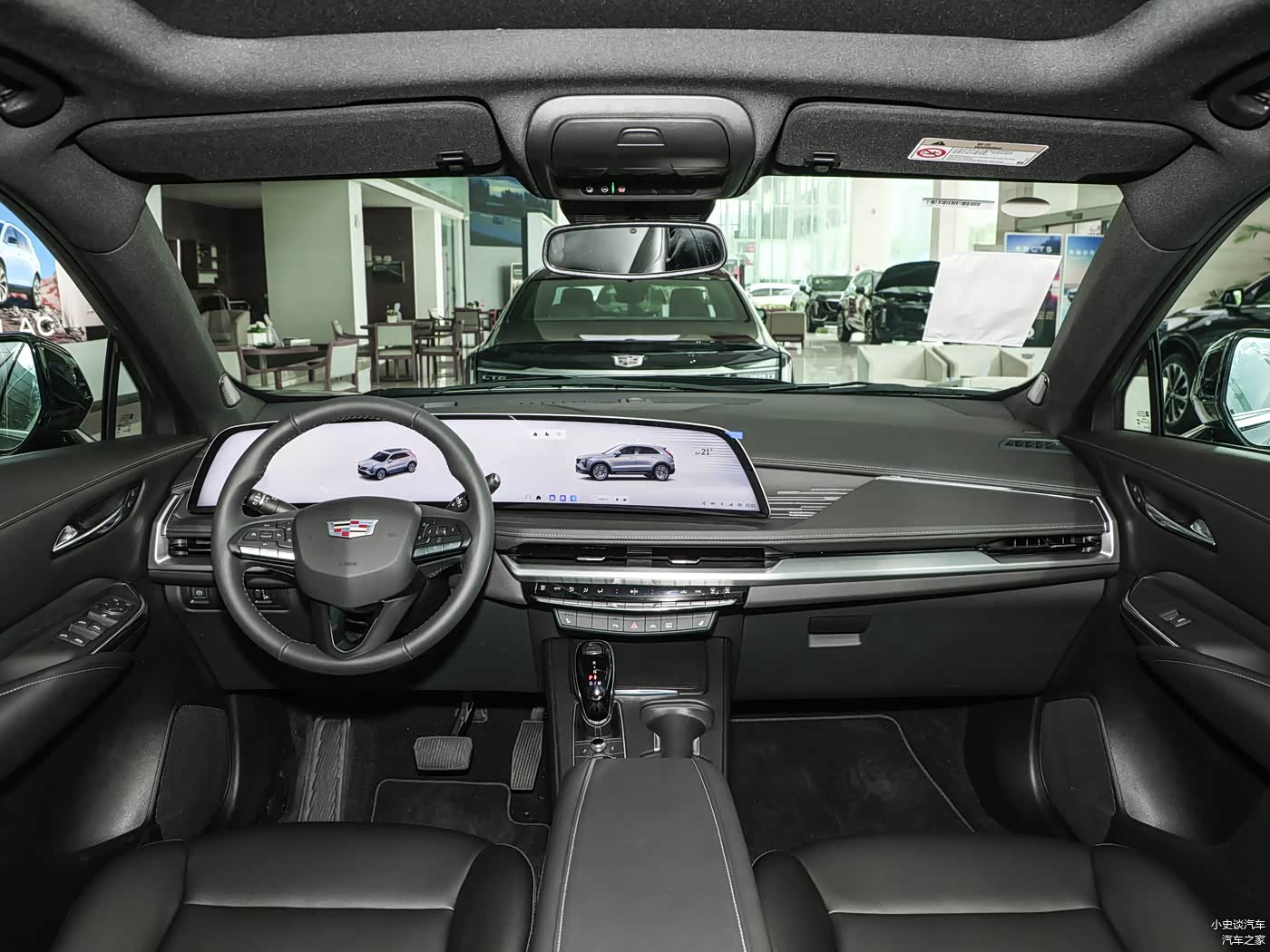 进入车内,2026款凯迪拉克XT4的内饰主打智能与豪华,打破了入门级豪华SUV的“廉价感”,展现出越级的品质,中控台采用对称式设计,布局规整,操作便捷,兼顾实用性与美观度。配置上,新车全系标配33英寸9K环幕式超视网膜曲面屏,采用车规级超窄边框设计与Mini-LED分区背光技术,显示清晰细腻,搭配高通8155车机芯片,操作流畅无卡顿,空间方面,新车采用5门5座布局,2779mm的轴距为车内空间提供了充足保障,前排座椅支撑性与包裹性出色,后排空间表现中规中矩,腿部空间够用,头部空间受溜背造型影响略有局促,中间地板凸起较高,对中间乘客的舒适性有一定影响。