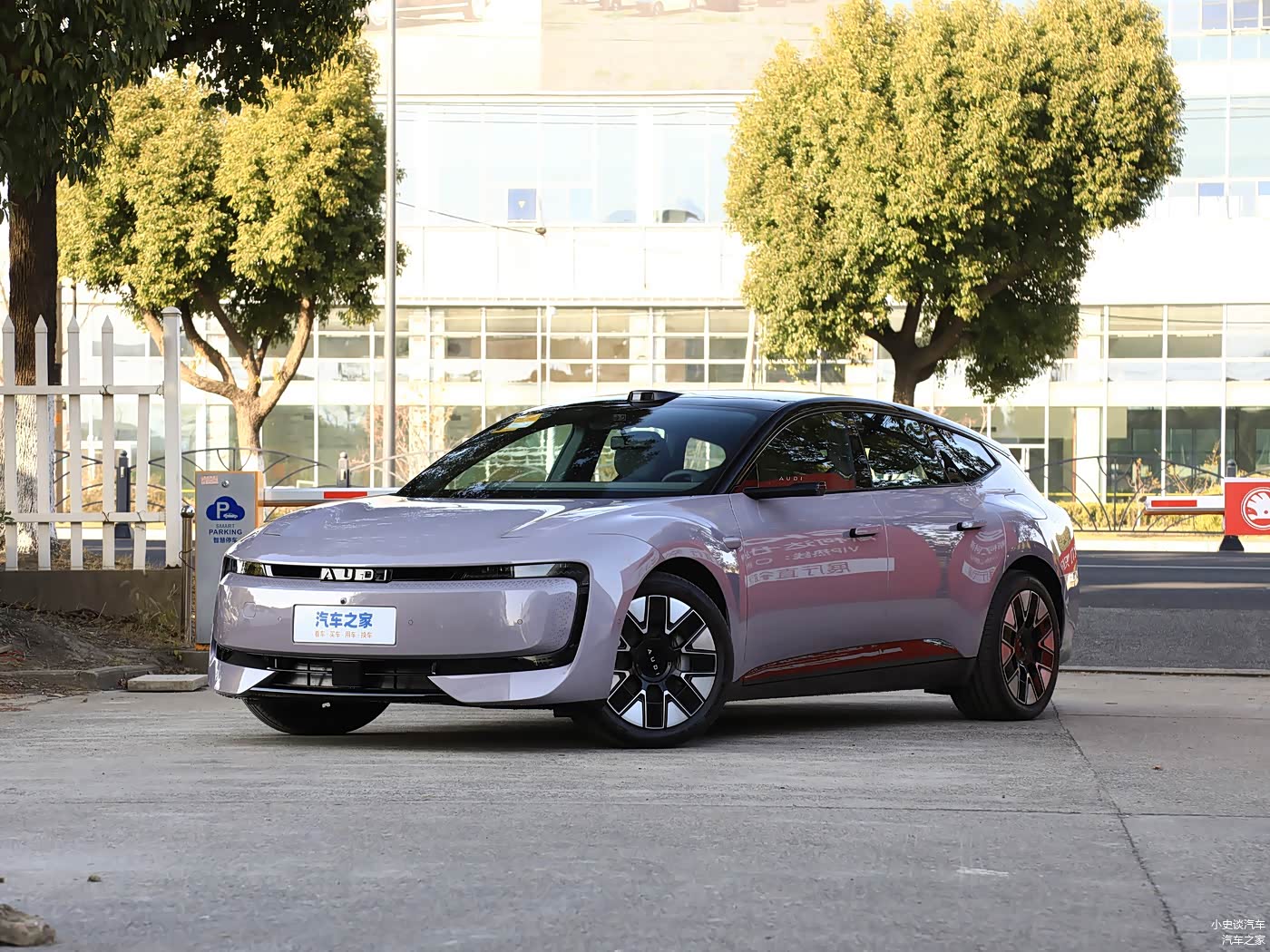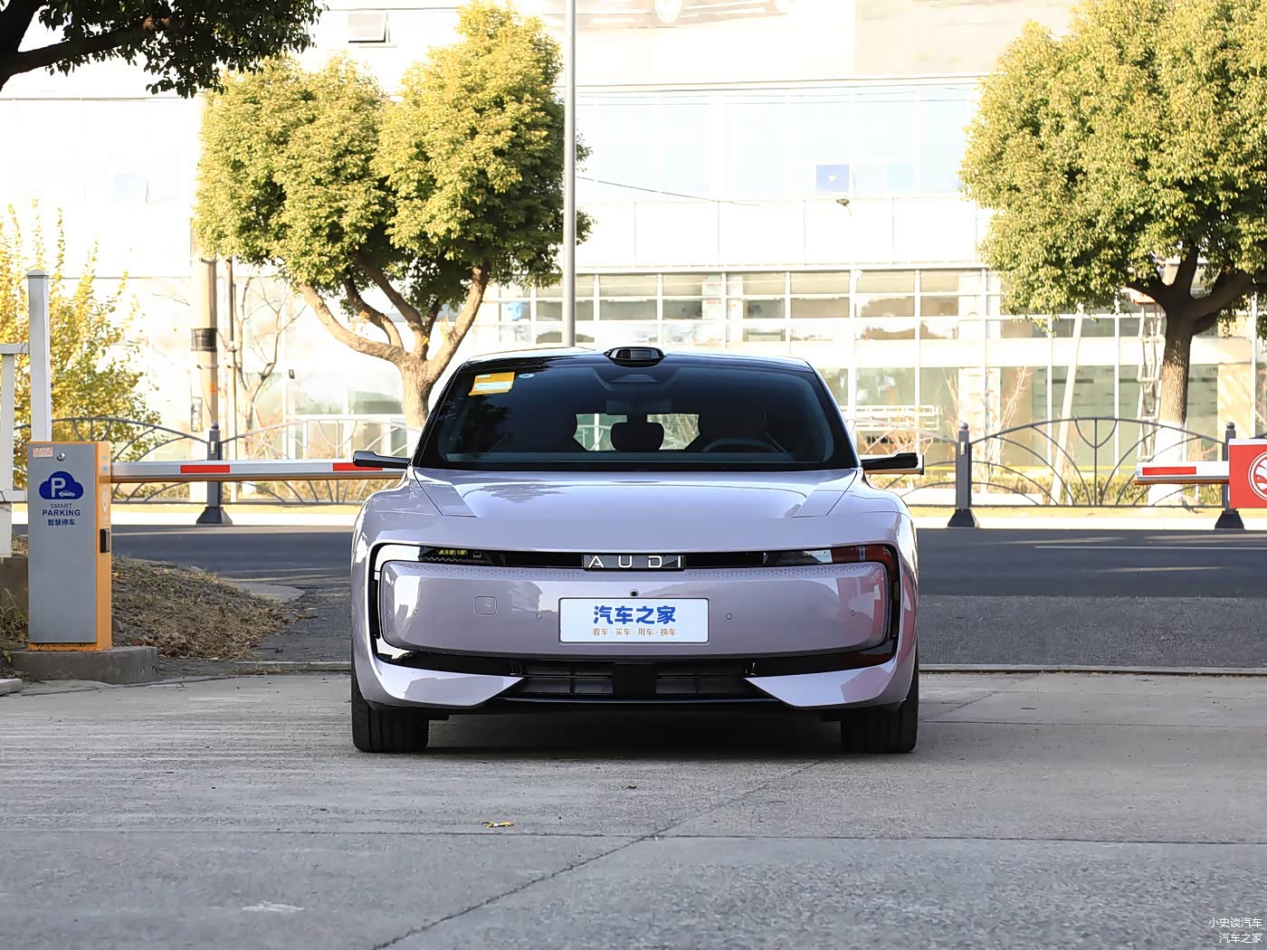 我们首先来看新车的外观设计方面,奥迪E5 Sportback彻底摒弃了家族经典的“四圈”LOGO,取而代之的是可发光的“AUDI”字母标,车头采用封闭式格栅设计,搭配环形星钻光幕,内部镶嵌多颗LED灯珠,夜晚点亮时如同璀璨星河,辨识度拉满。两侧独立风道不仅优化了空气动力学性能,还为车头增添了几分凌厉感。