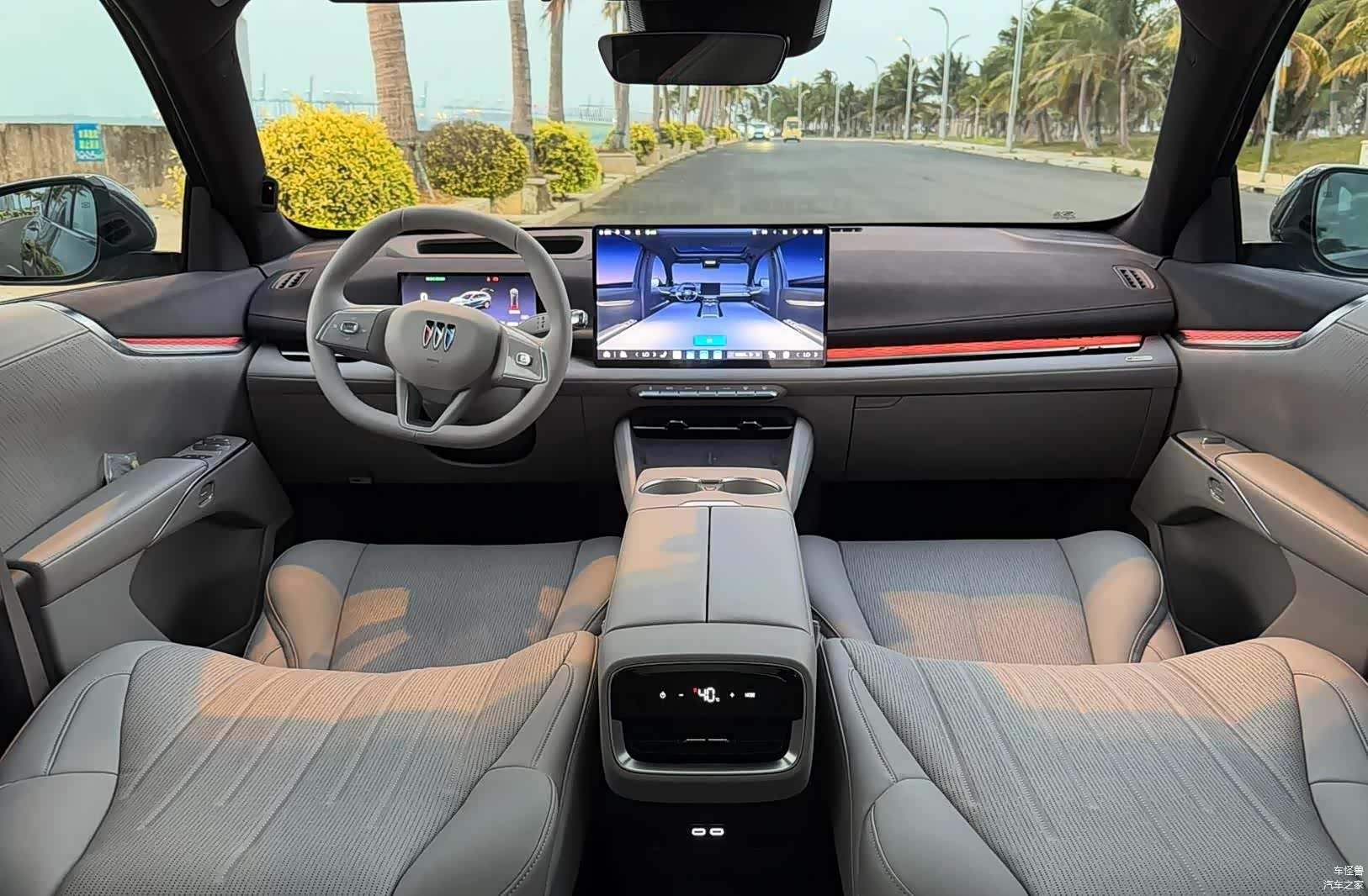 内饰走简洁科技路线,环抱式中控台上的大屏和仪表屏,配合AR HUD抬头显示,看信息方便。大面积皮质材料和环绕式氛围灯,豪华感十足。座椅是亮点,前排副驾“伊姆斯零重力躺椅”舒适度高,第二排座椅功能丰富,还能灵活组合成多种模式。此外,吸顶娱乐屏、智能冷暖箱等配置,提升了舒适感和娱乐体验。