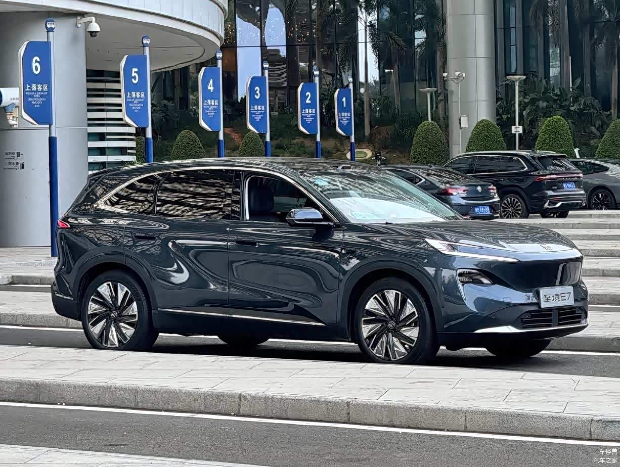 外观上,至境E7前脸辨识度高,向前俯冲的封闭式车头搭配突出的车鼻,力量感十足。两侧上扬的“C”字形日间行车灯凌厉有神,“7”字形大灯组融入“璀璨星河”元素,精致又独特。梯形熏黑下格栅和镀铬前铲,增添了档次与运动气息。车顶的激光雷达,预示着它在智能驾驶方面会有出色表现,搭载的“逍遥智行”全场景辅助驾驶功能,能让日常用车更轻松。