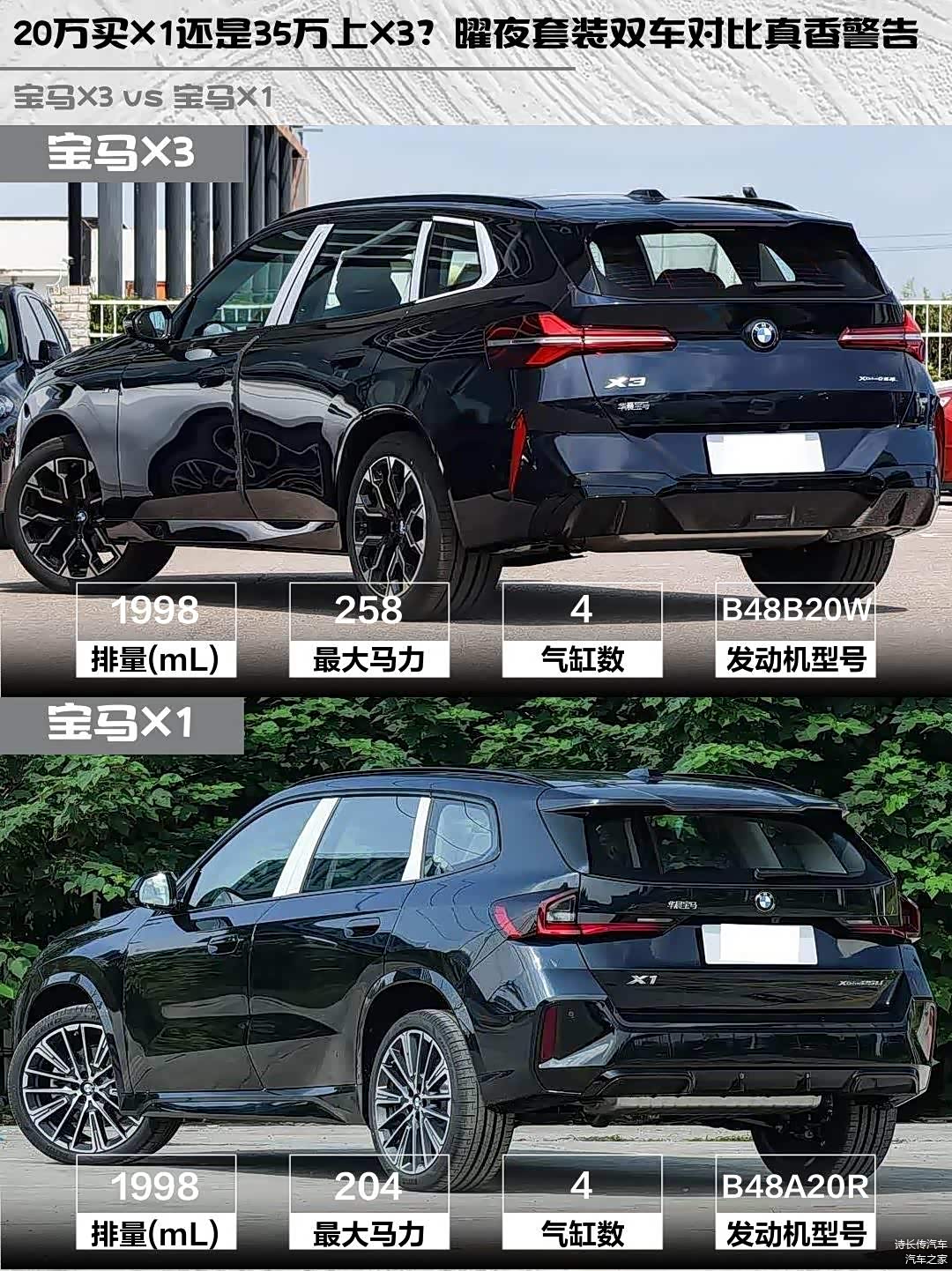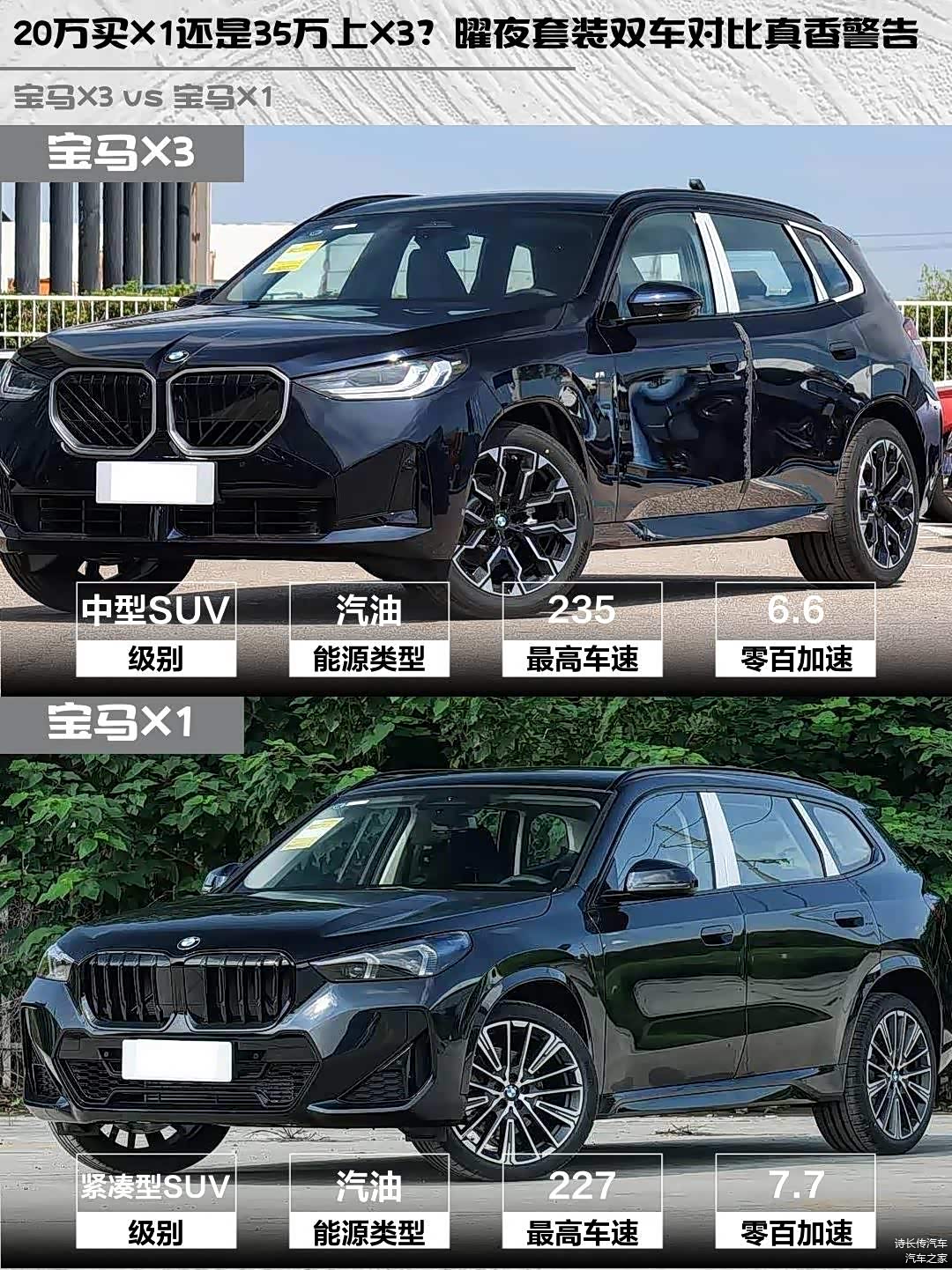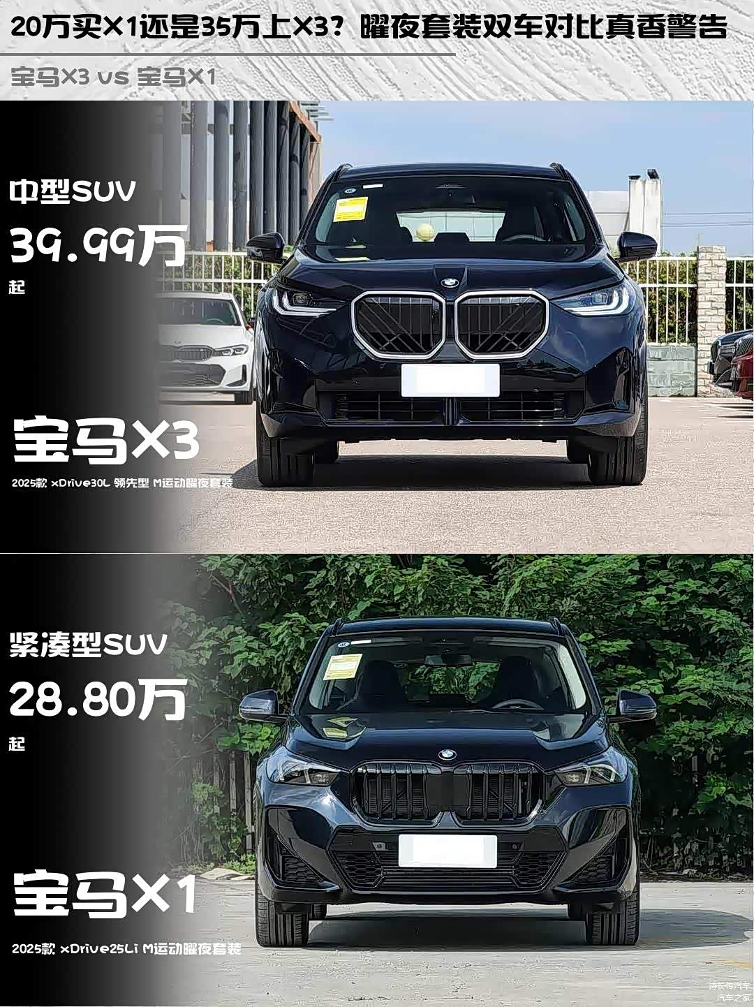 最近在纠结宝马X3和 宝马X1(图片 | 参数 | 询价)的朋友看过来!🚗 作为深度体验过两台车的车主,今天就从实际用车角度聊聊这两台曜夜套装的差异,帮你找到最适合自己的那台宝马~