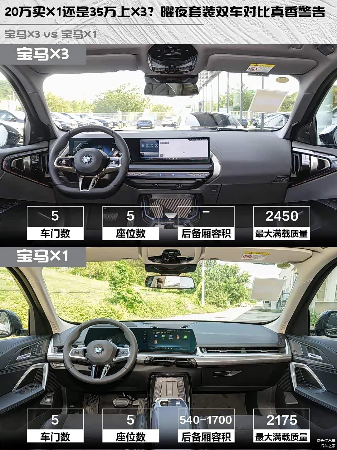 X3指导价39.99万,终端优惠后35万左右能落地;X1指导价28.8万,现在20万出头就能开走。如果预算充足,X3的豪华感和驾驶质感确实更胜一筹;但X1性价比真的香,入门即享四驱+曜夜套装,适合想要宝马标又不想超预算的伙伴。