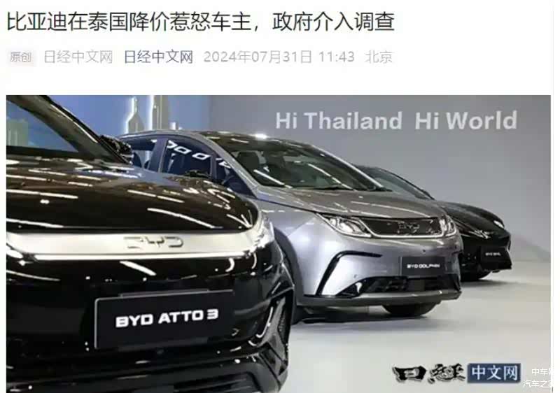 低价竞争、价格战,始终是萦绕在中国品牌身上的标签。如在泰国市场上,2024年比亚迪在泰国接连采取降价措施,导致已购车用户的不满情绪高涨,曾遭到泰国相关部门调查。彼时,报道称,2024年3月比亚迪曾宣布大幅降价,进入7月以后,比亚迪“ATTO 3”最高降34万泰铢。
