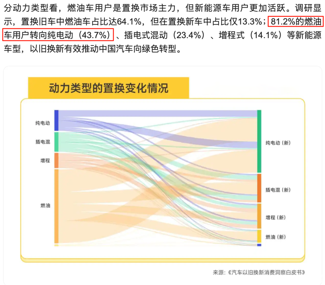 张泽不是个例。中国汽车流通协会近期的一份用户调研数据显示,81.2%的燃油车用户在换车时会优先考虑新能源汽车,其中43.7%的人明确表示会转向纯电车型。