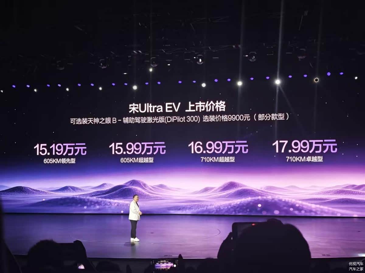3月26日,比亚迪又一款全系标配第二代刀片电池和闪充技术的新车—— 宋Ultra EV(图片 | 参数 | 询价)正式上市,新车分605km和710km两个续航共4个配置,官方指导价15.19万-17.99万元。