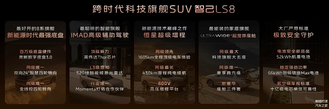 当然说在最后,还是续航怎么样,有没有里程焦虑,毕竟从油车切换过来也需要对这方面更进一步了解,从智己LS8公布的430公里CLTC纯电续航里程,不论是城区通勤一周左右,还是城市间高速通勤,这部车都能涵盖到位,关键是全系800V平台,在高功率桩上能做到至少3-5C充电倍率,也就说10%到充满基本上也就20分钟到半个小左右能搞定,再加上有“恒星超级增程系统”,一部高热效率的增程器,能提供稳定的电力输出,加油就走也就没有里程焦虑。