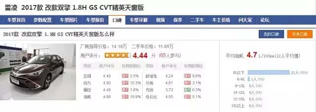 我们以目前关注度最高的雷凌2017款 改款双擎 1.8H GS CVT精英天窗版为例。