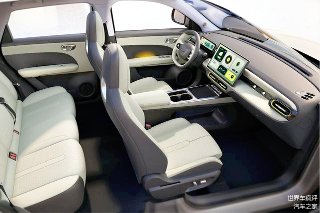 内饰方面,两块大屏看着挺有科技感,前方采用的是15.6英寸中控屏加8.8英寸仪表,车机用的是高通8155芯片,操作流畅性肯定不需要担心。其次就是它的AI灵犀智舱,语音控制很灵敏,还能AI作诗画画,但提供了娱乐性。同时中控台下面有手机无线充电,杯架也顺手,电子怀挡也为中控区域节省了不少空间。