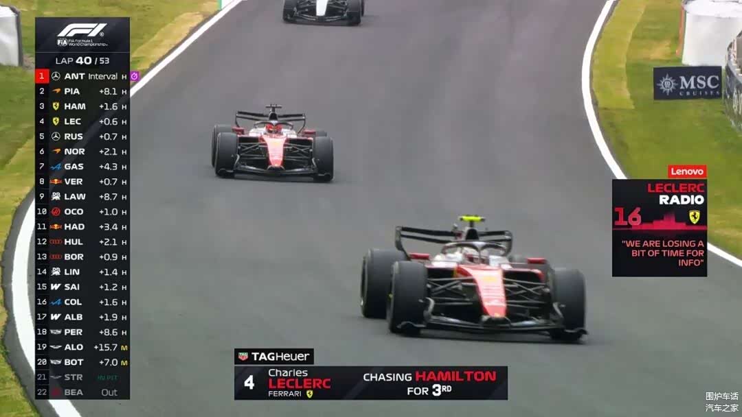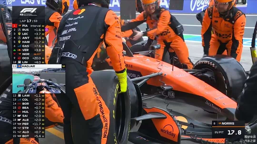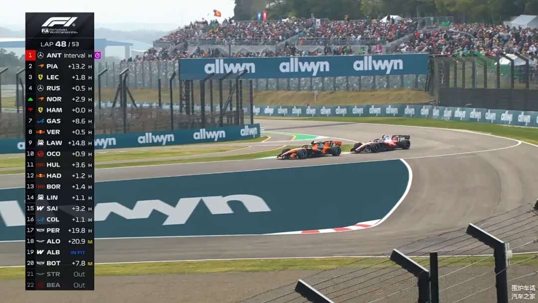 最后阶段诺里斯也和汉密尔顿展开拉锯战,最终超了过去