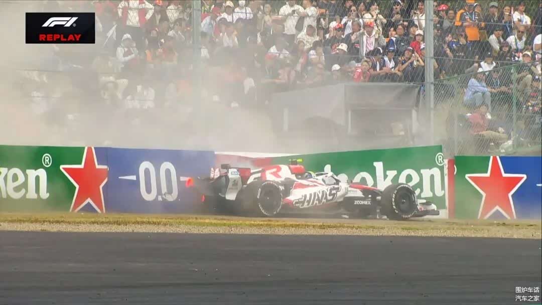 贝尔曼失控撞墙力道很大,人也受了轻伤