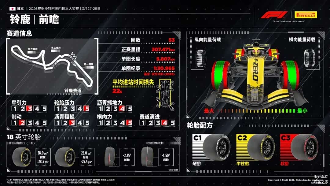 自从日本站比赛从年尾挪到了年初,盛开的樱花和摩天轮就成了日本站的标志。今年是第40届日本大奖赛,铃鹿赛道也是赛车手最喜爱的赛道之一。这里单圈5.807公里,独特的八字型单圈布局中,有着18个弯角,多个弯道堪称赛道经典,这里并不好超车,所以每次日本大奖赛都很精彩。