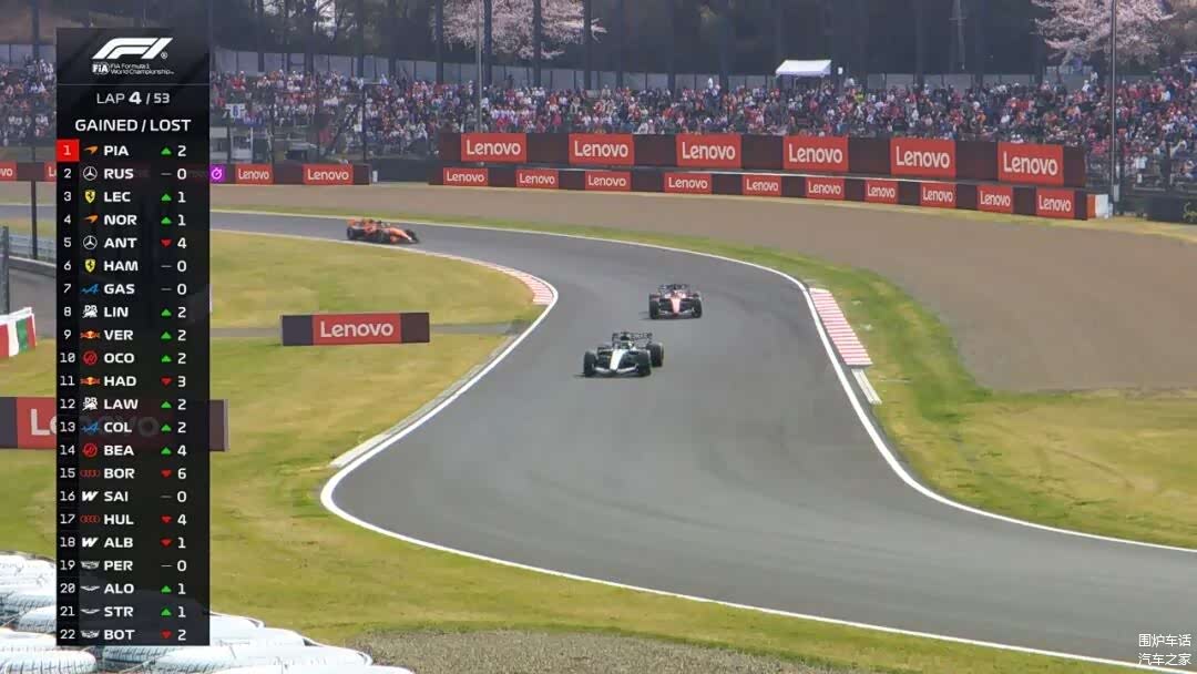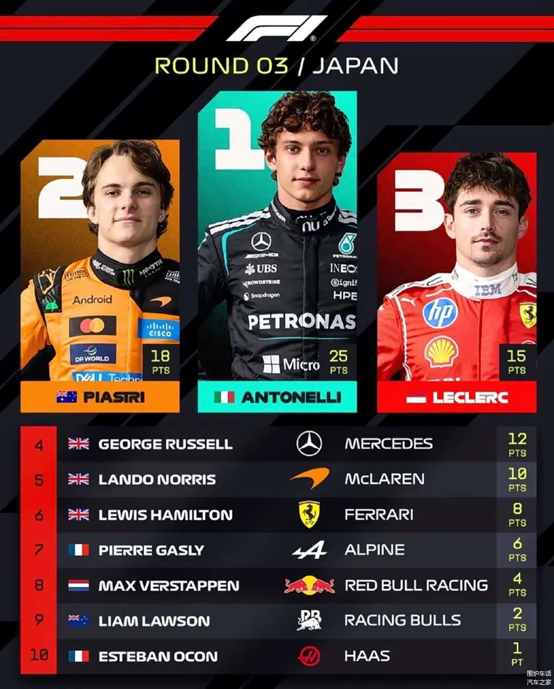 三月底在樱花盛开的季节F1迎来了日本大奖赛,梅奔车队凭借赛车性能优势依然势不可挡。不过这一站迈凯伦车队回来了,回到了与梅奔和法拉利竞争的行列。最终小将安东内利继中国站之后两连冠,皮亚斯特里强势夺得亚军,勒克莱尔第三,三支强队均登上了领奖台。