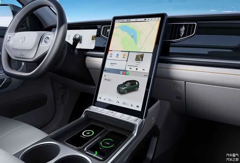 再来看自游家NV的内饰,现在来看是比较传统简洁的,但肉眼看过去,真皮和软质材料不会少,根据官方信息,内饰大量运用了Nappa真皮,触感应该不必担心。方向盘两辐设计,滚轮的多功能按键用起来会比较顺手,中控竖状15.6英寸大屏可以支持自游家自己的NIUTRON OS和苹果CarPlay同时显示,界面以积木样式拼接,底部还有一排物理按键,屏幕也带有振动反馈,但是不是好用我要等到有实车体验再评价。既然李想说理想L6会远远好于自游家NV,我有道理推测理想L6会使用和理想L7、理想L8一样的LCD屏幕,内置8155芯片。我已经体验过理想L8,顺滑的触感就像是滑动手机,没有卡顿且色彩饱满。