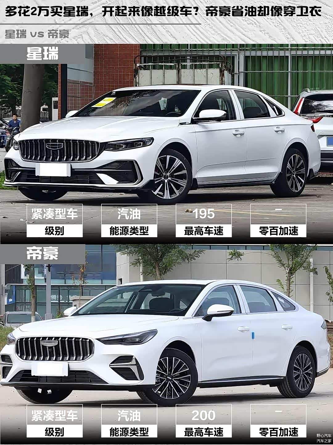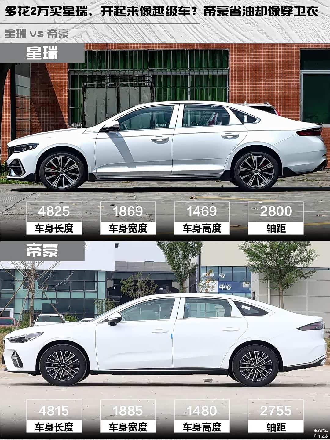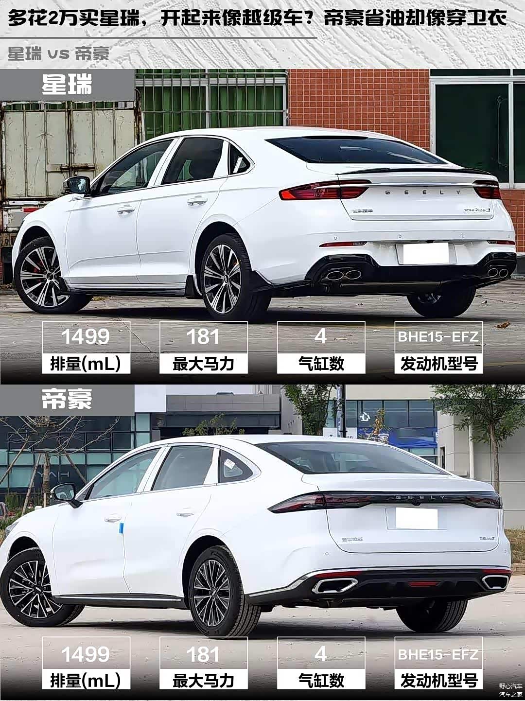 WLTC工况下帝豪5.95L/100km比星瑞6.2L更省,实际开下来帝豪市区通勤能比星瑞省0.8L左右。但星瑞的动力储备更充沛,高速超车时转速不用拉太高,反而长途油耗差距会缩小。
