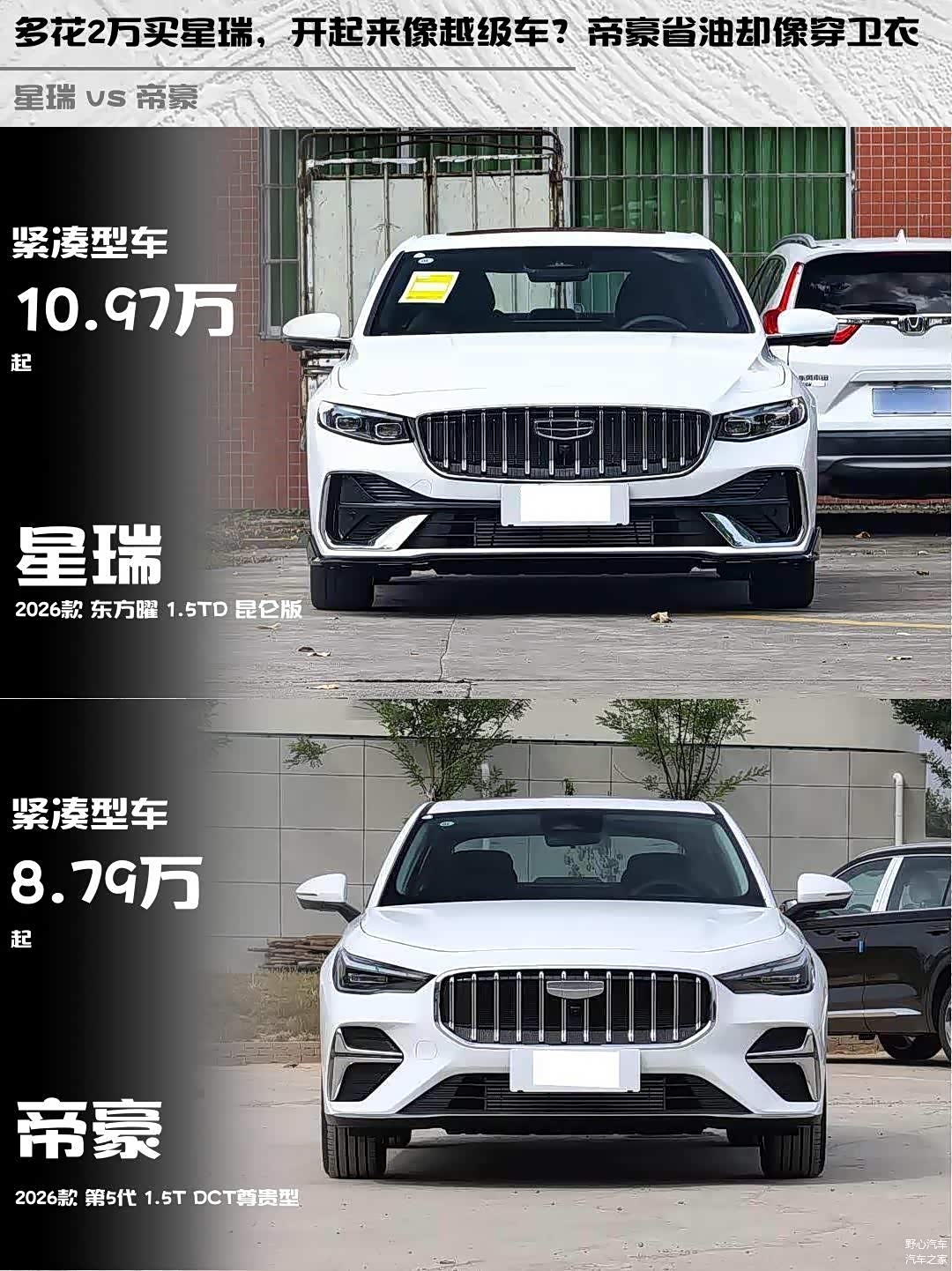 最近有朋友在纠结选 星瑞(图片 | 参数 | 询价)2026款东方曜1.5TD昆仑版还是帝豪2026款第5代1.5T DCT尊贵型,刚好这两台车我都深度体验过,来唠点干货感受!🔥