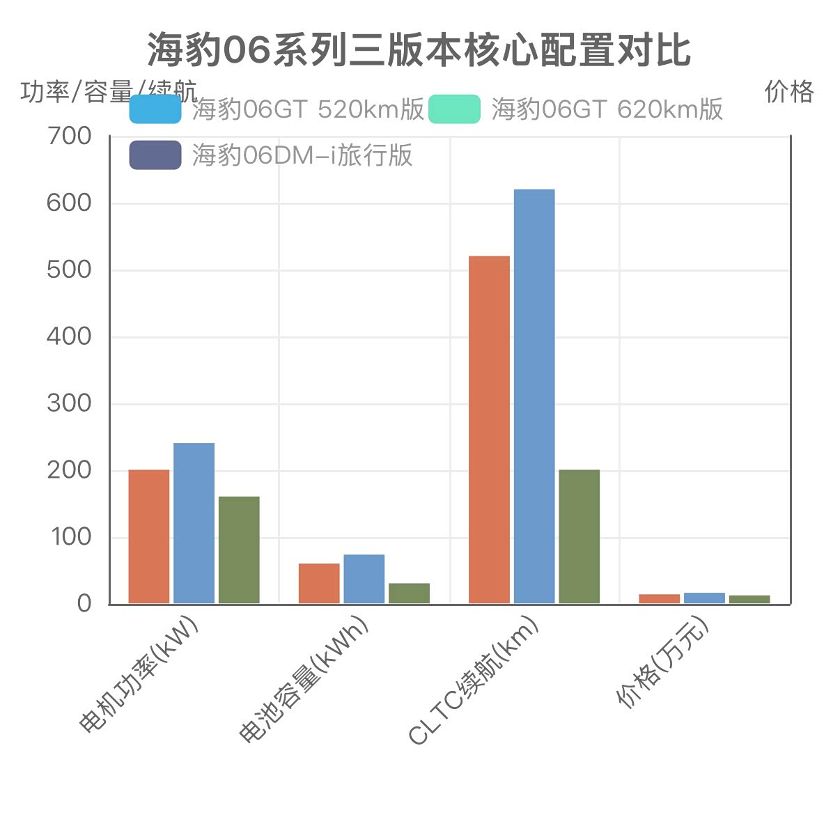 图表1:海豹06系列三版本配置对比柱状图